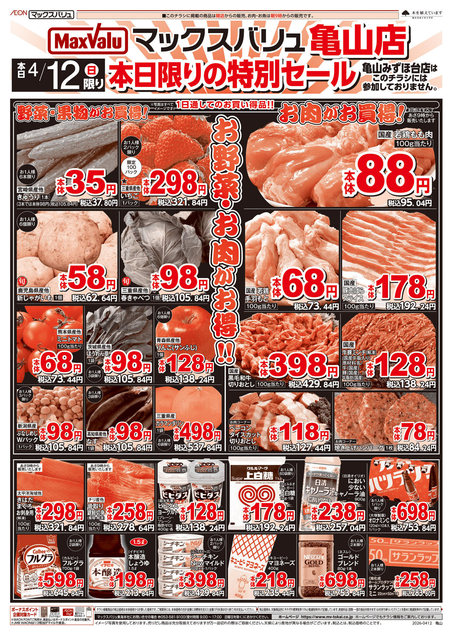マックスバリュ亀山店今週のチラシ(2026年4月20日〜4月26日)