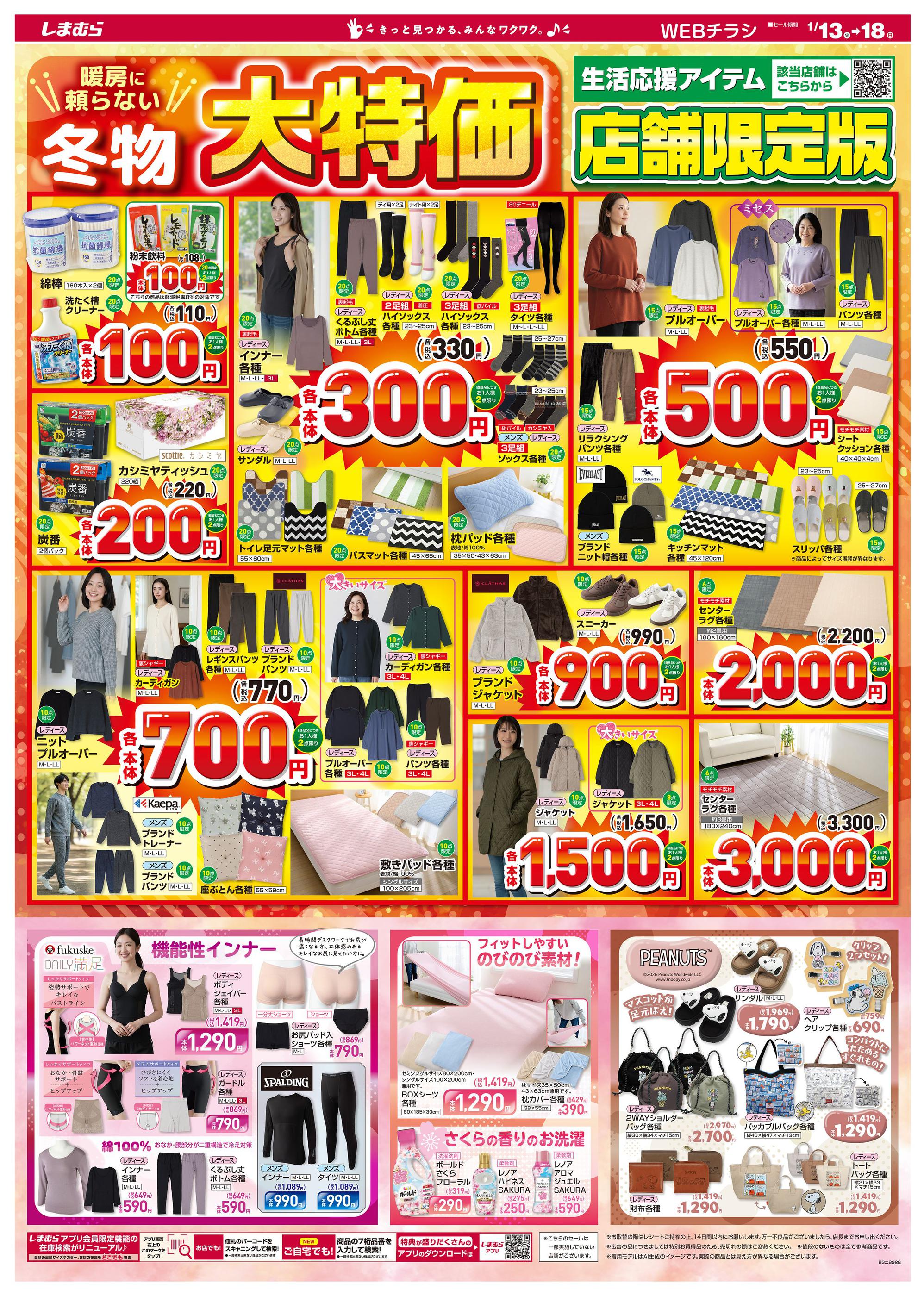 しまむら四日市中央店今週のチラシ(2026年1月12日〜1月18日)