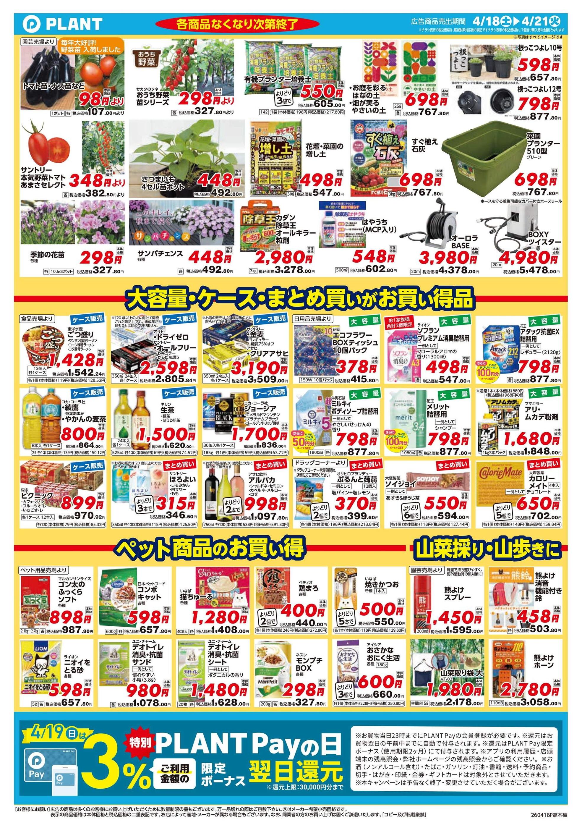 PLANT木津川店今週のチラシ(2026年4月13日〜4月19日)
