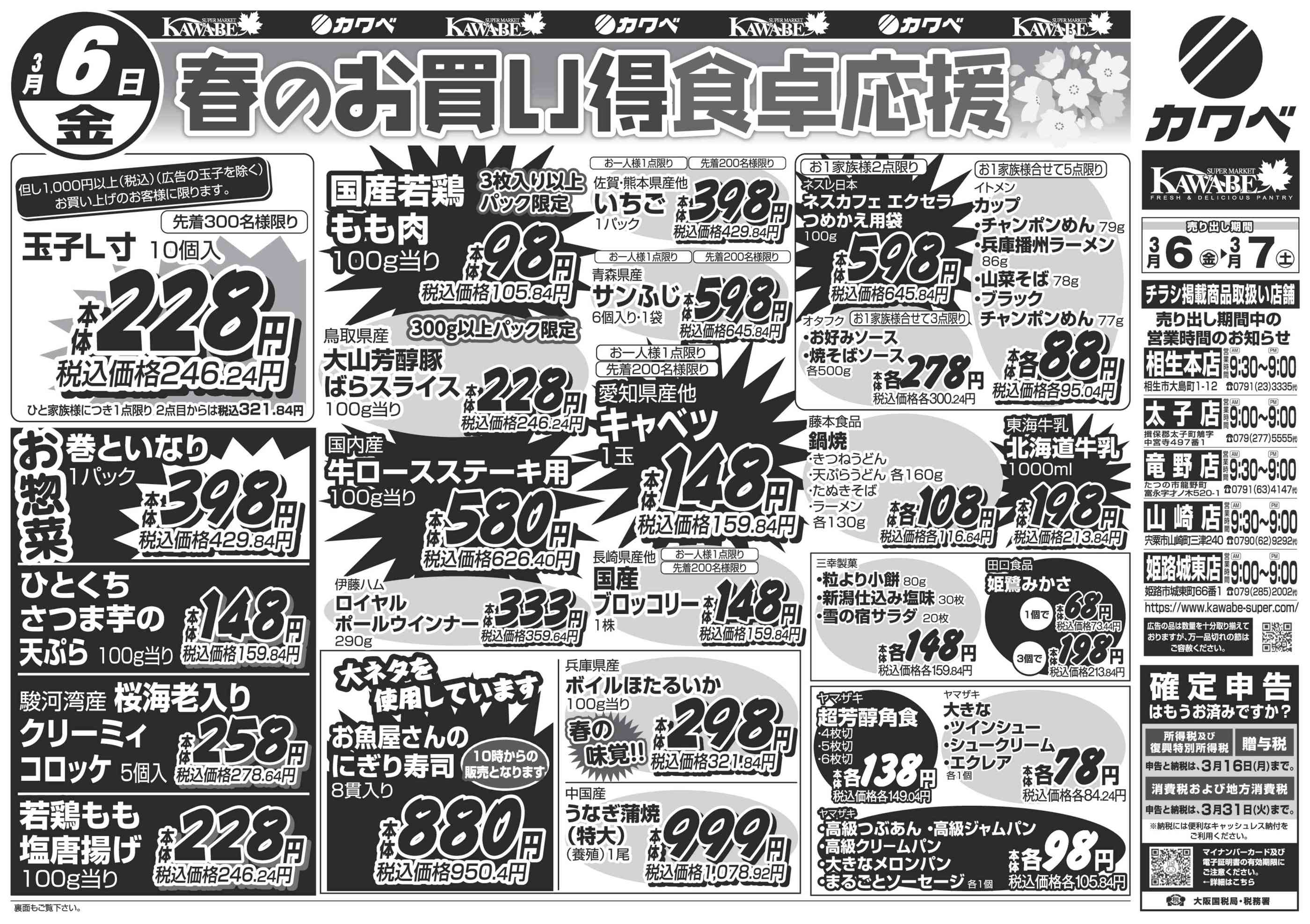 カワベ 姫路城東店今週のチラシ(2026年3月23日〜3月29日)