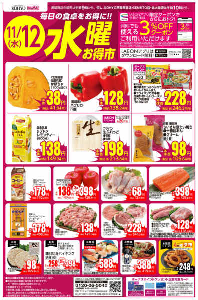 特売やセール情報など最新のチラシを掲載中。(2種類、3枚のチラシを掲載しています)