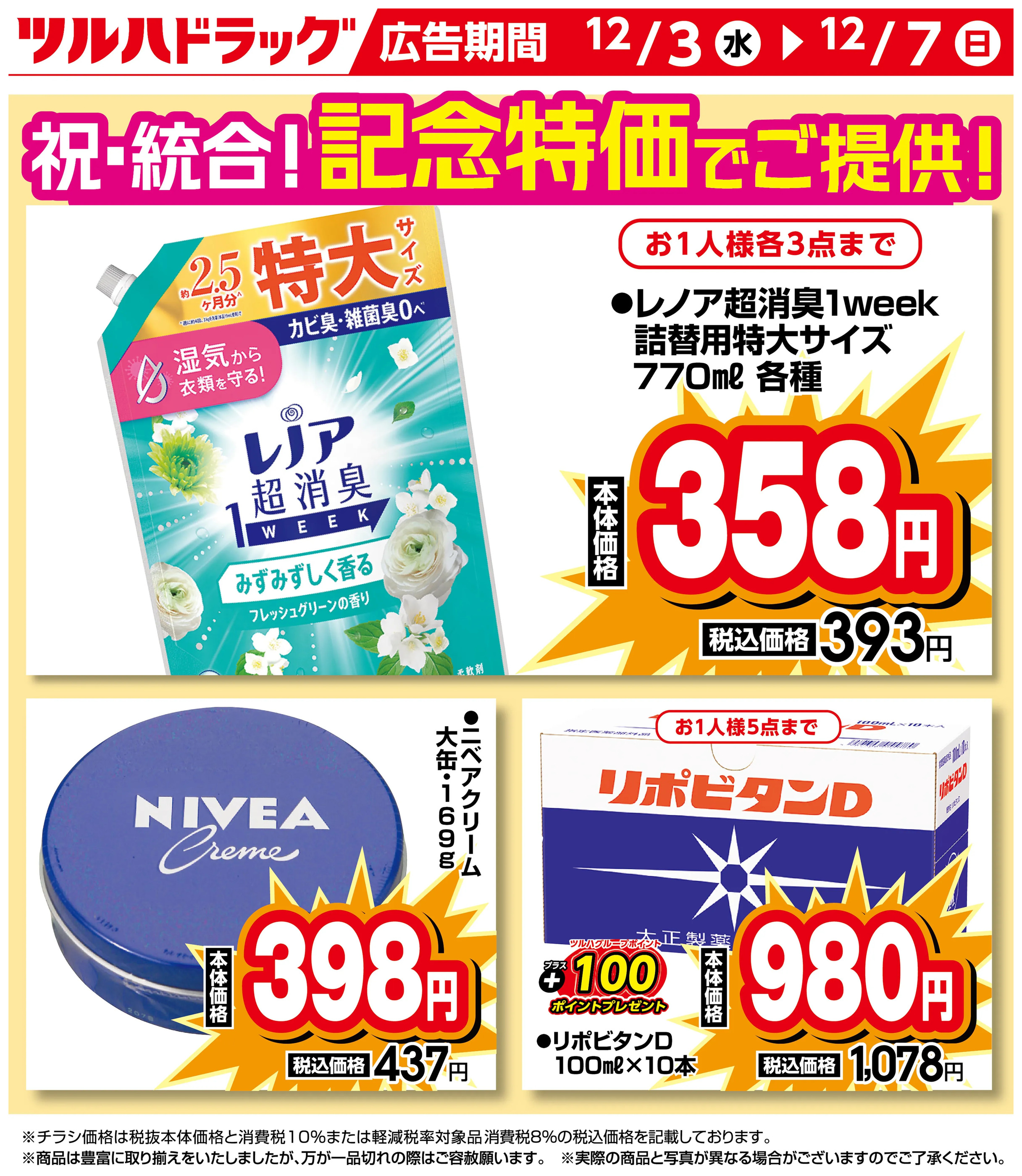 - 12/3号特大チラシ「日本最大ドラッグストアチェーン誕生記念セール」12月3日~12月7日 (2枚)