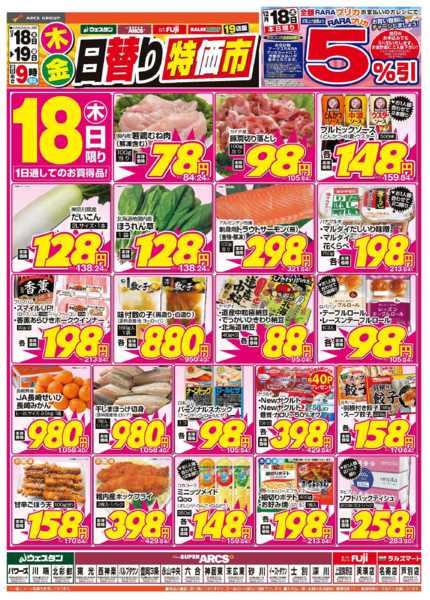 特売やセール情報など最新のチラシを掲載中。(2種類、5枚のチラシを掲載しています)