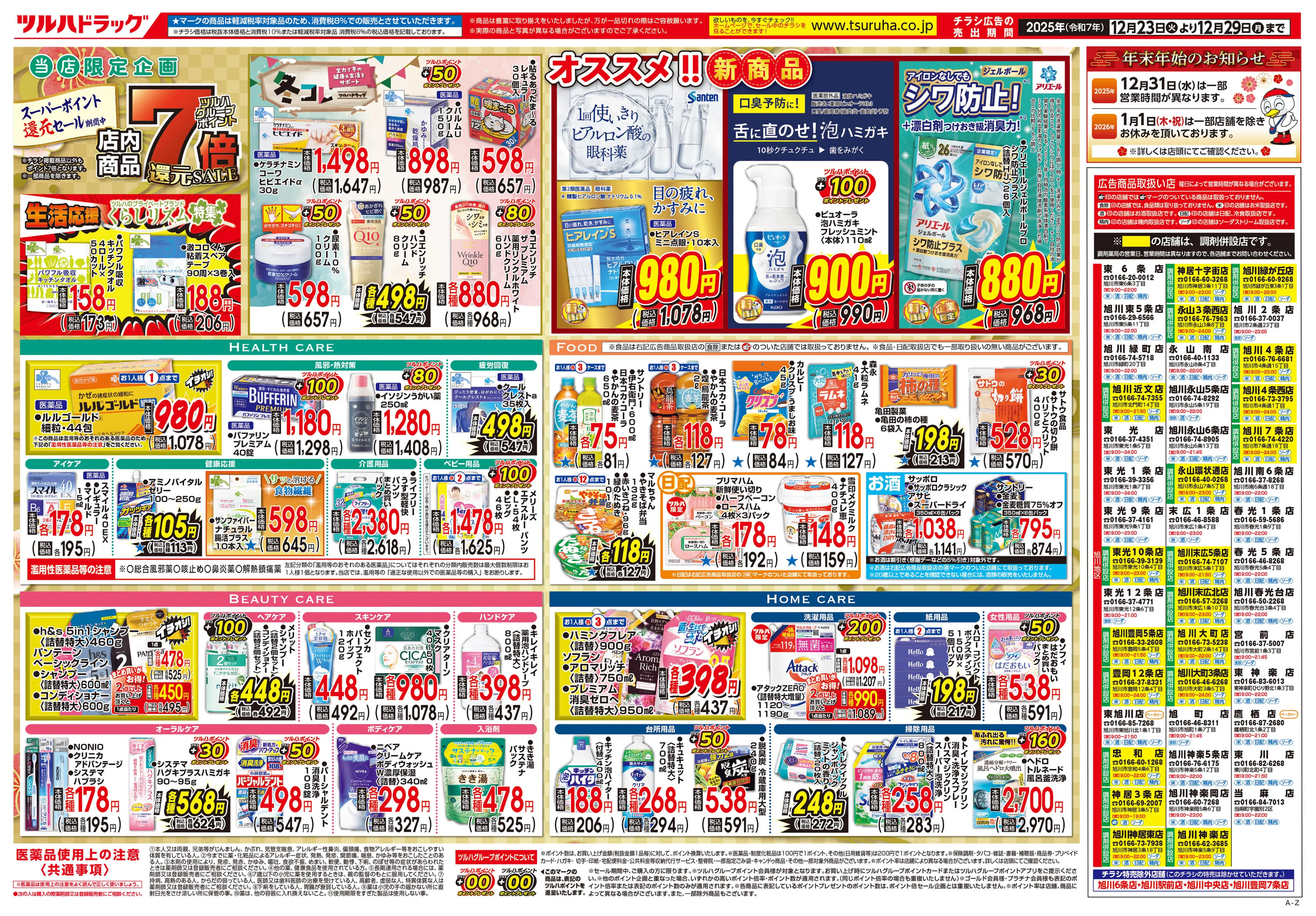 ツルハドラッグ旭川末広5条店今週のチラシ(2025年12月22日〜12月28日)