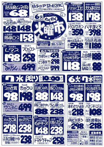 特売やセール情報など最新のチラシを掲載中。(6種類、7枚のチラシを掲載しています)