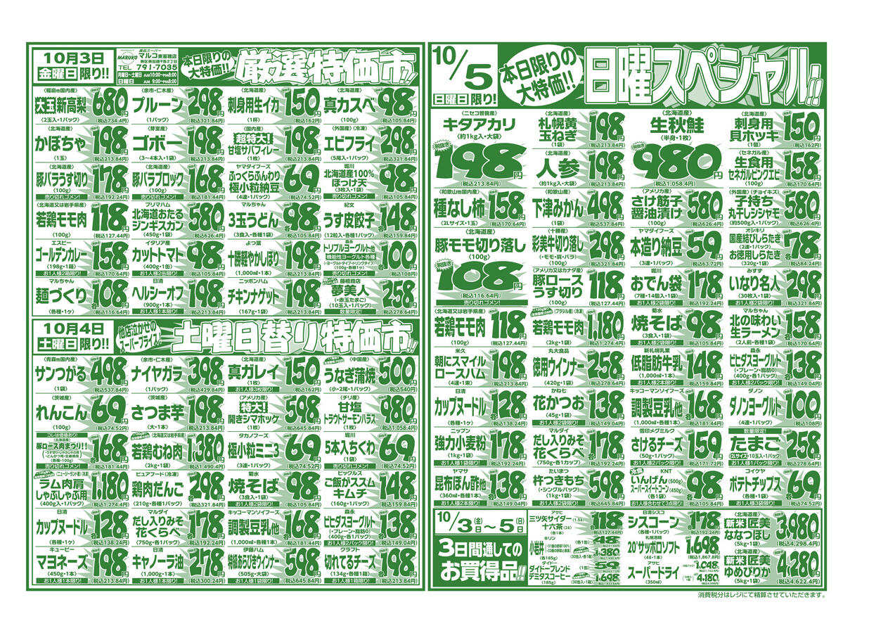 マルコストアー東苗穂店今週のチラシ(2025年10月13日〜10月19日)