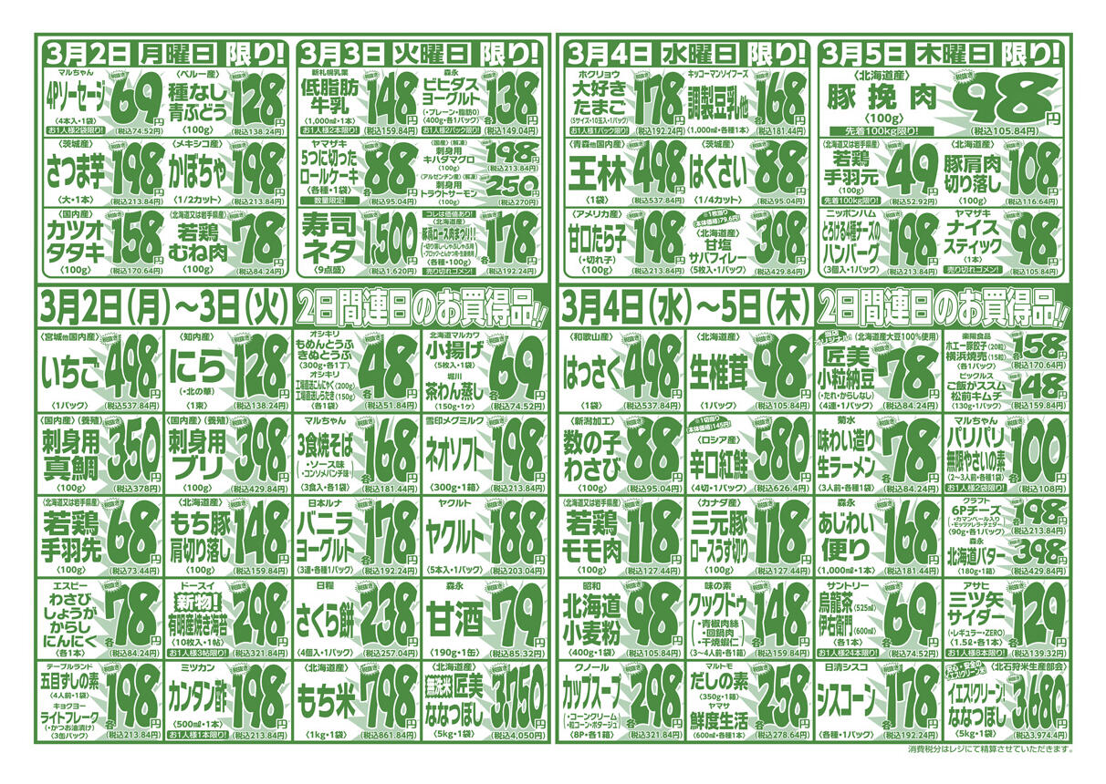 マルコストアー東苗穂店今週のチラシ(2026年3月9日〜3月15日)