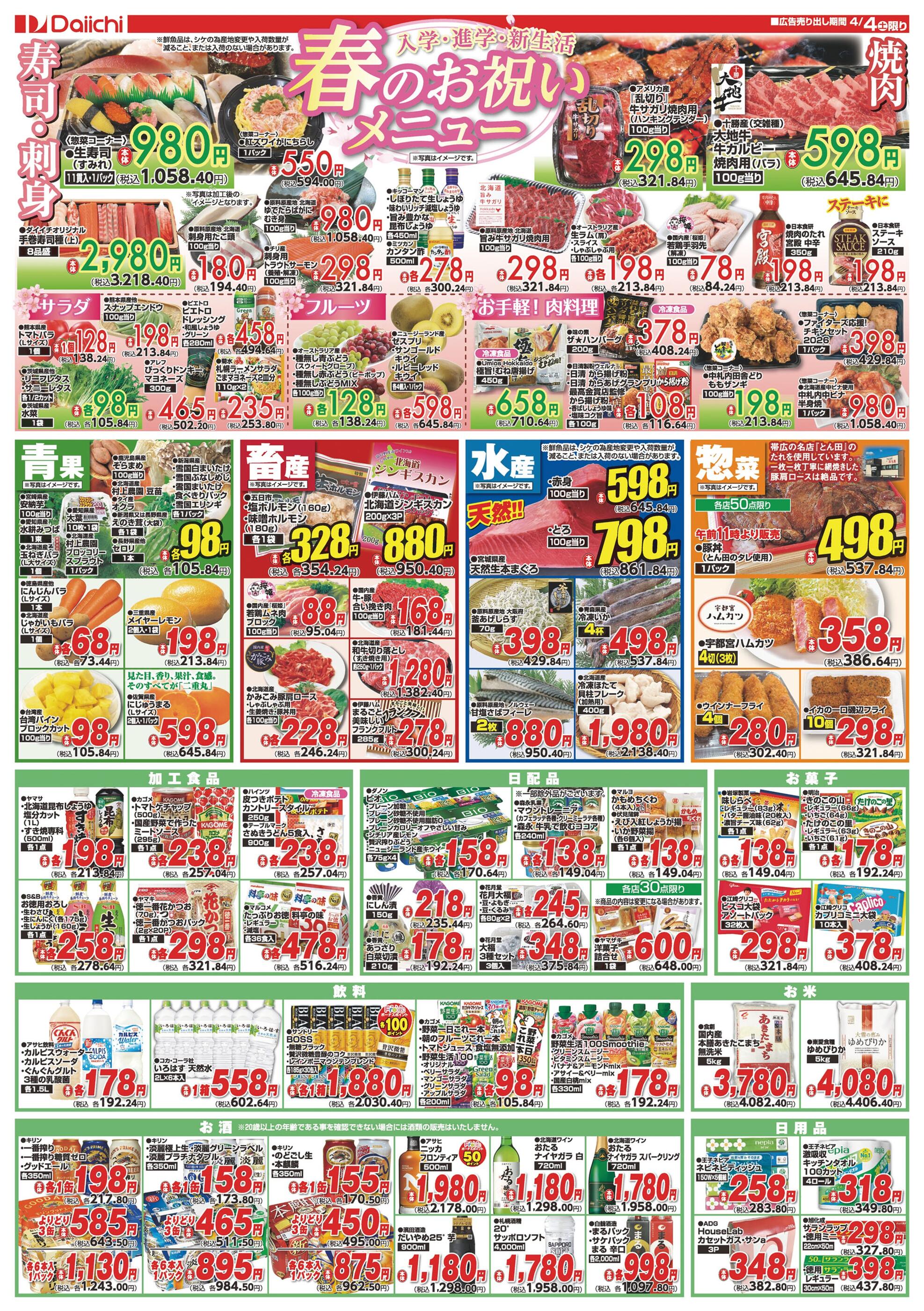ダイイチアリオ札幌店今週のチラシ(2026年3月30日〜4月5日)