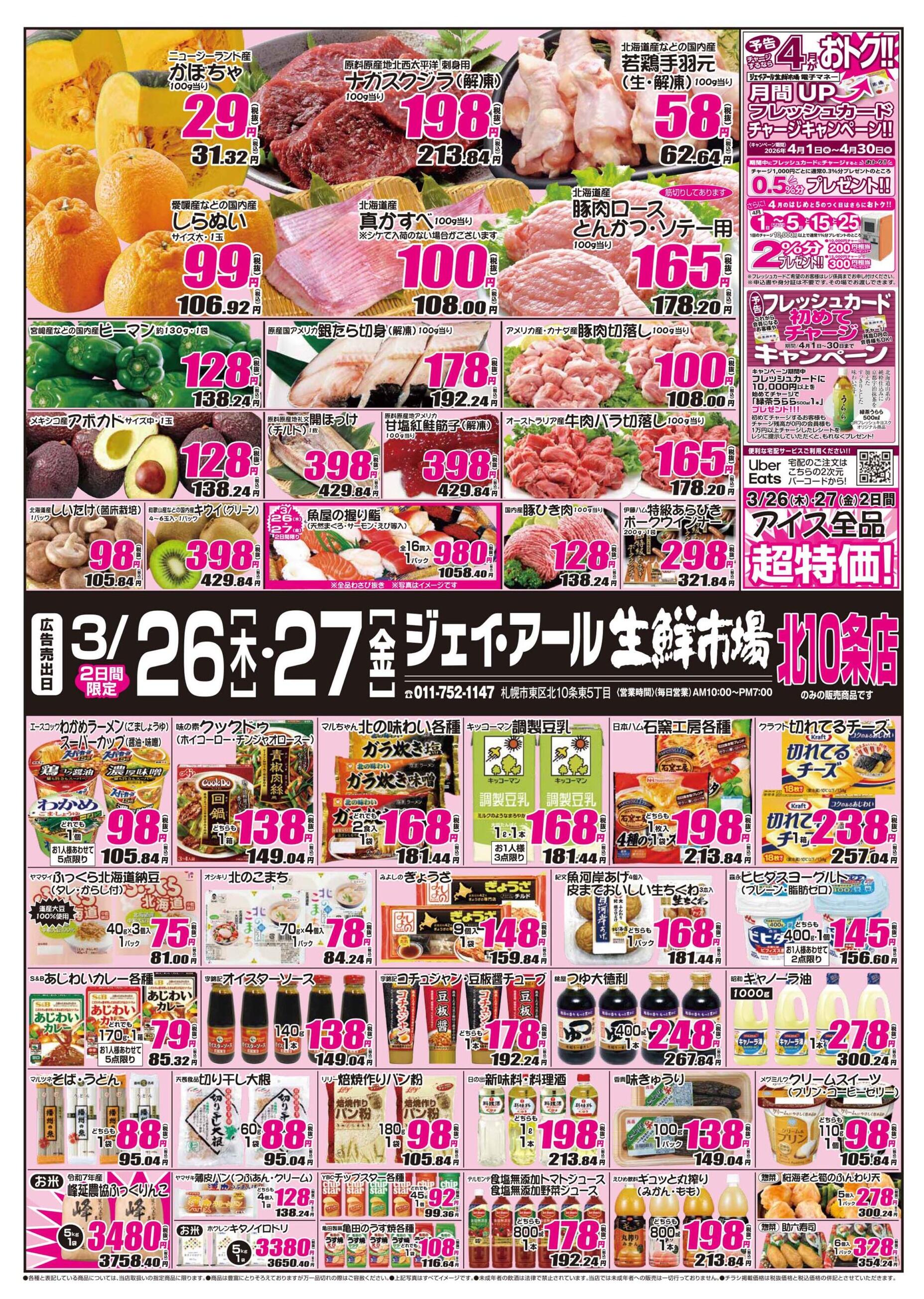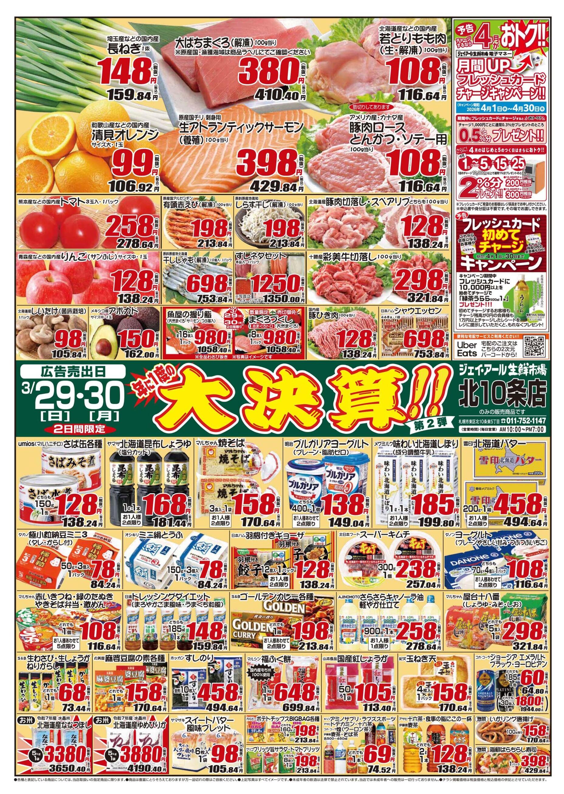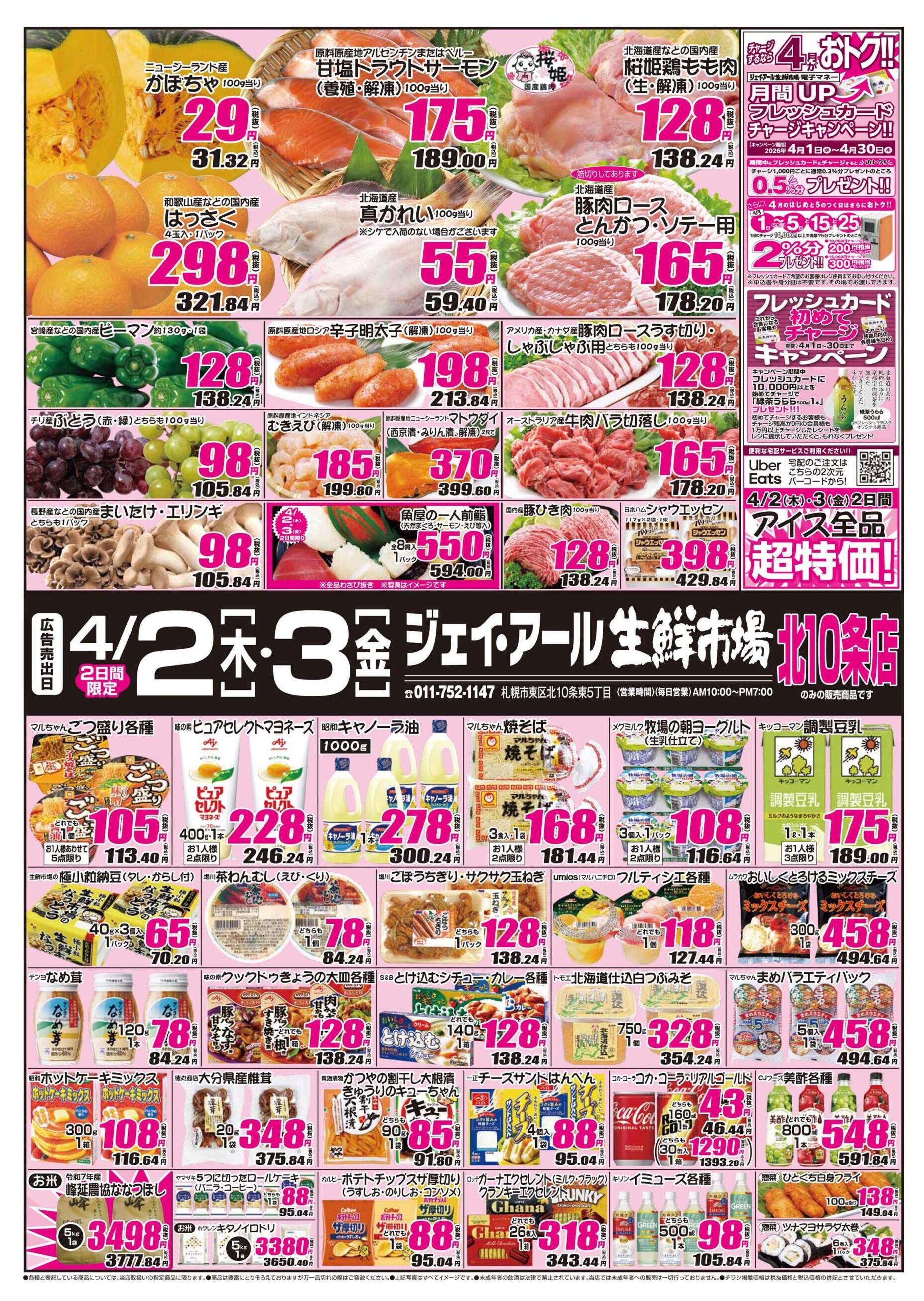 ジェイ・アール生鮮市場 北10条店今週のチラシ(2026年3月30日〜4月5日)