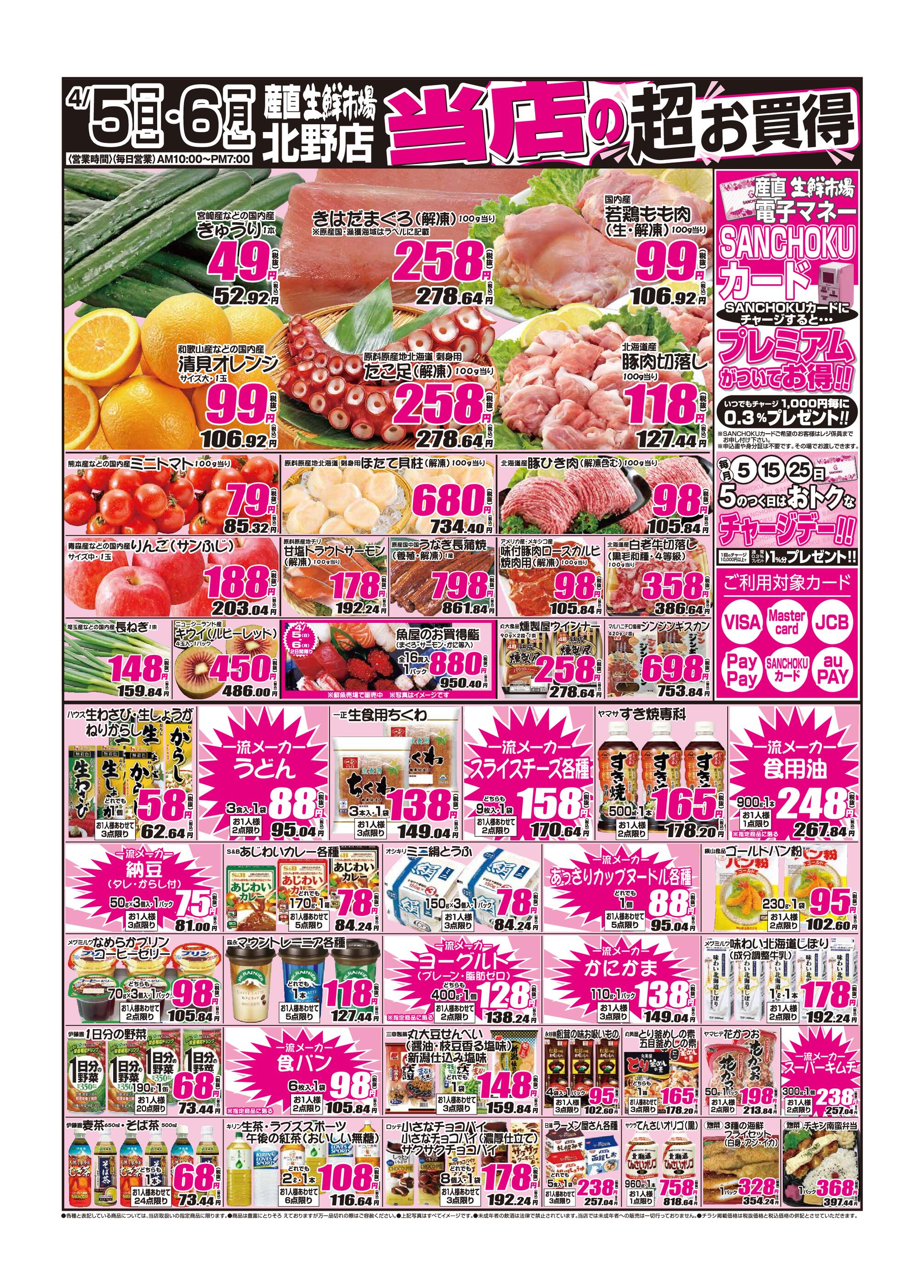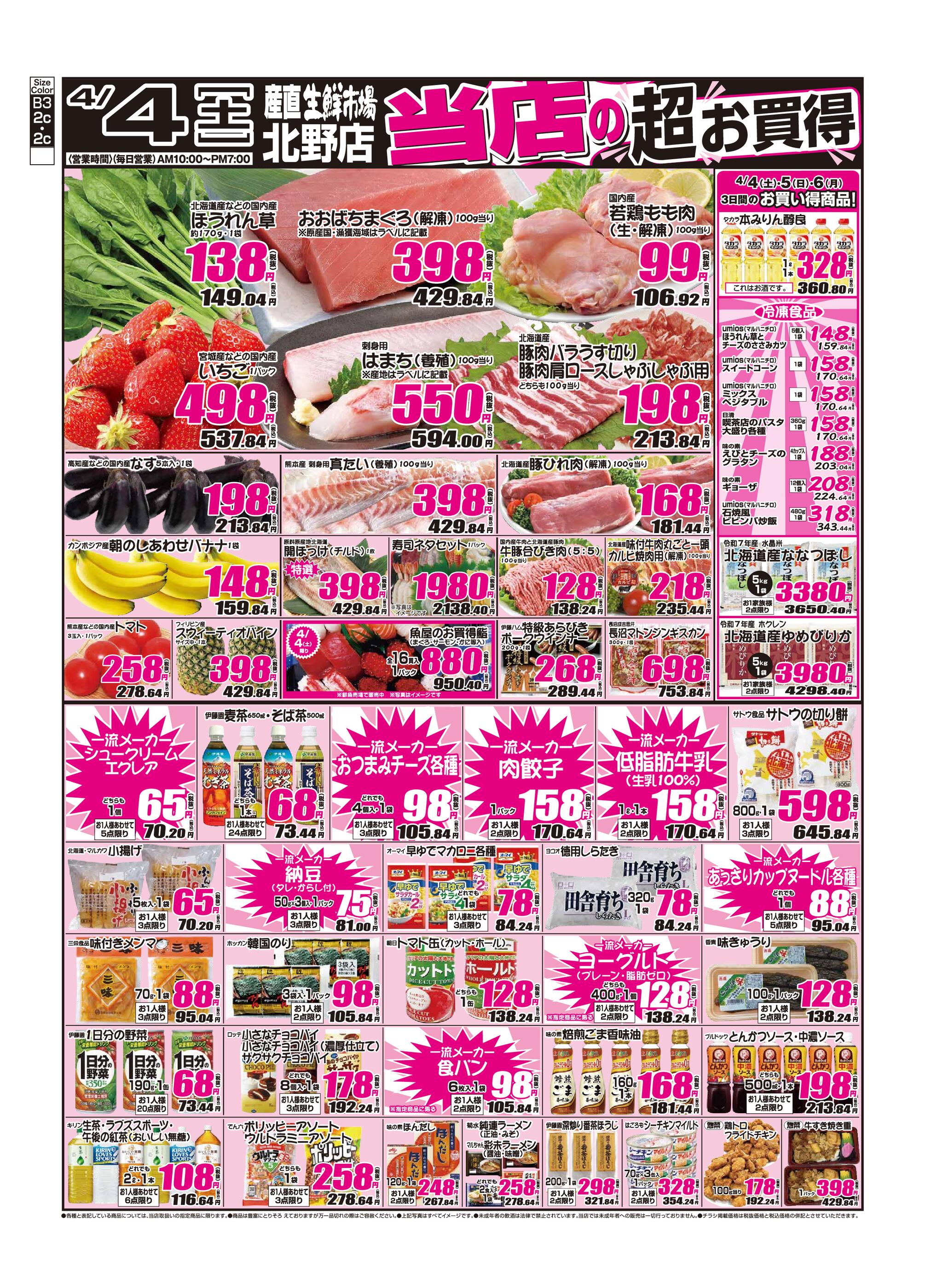 産直生鮮市場 北野店今週のチラシ(2026年4月6日〜4月12日)