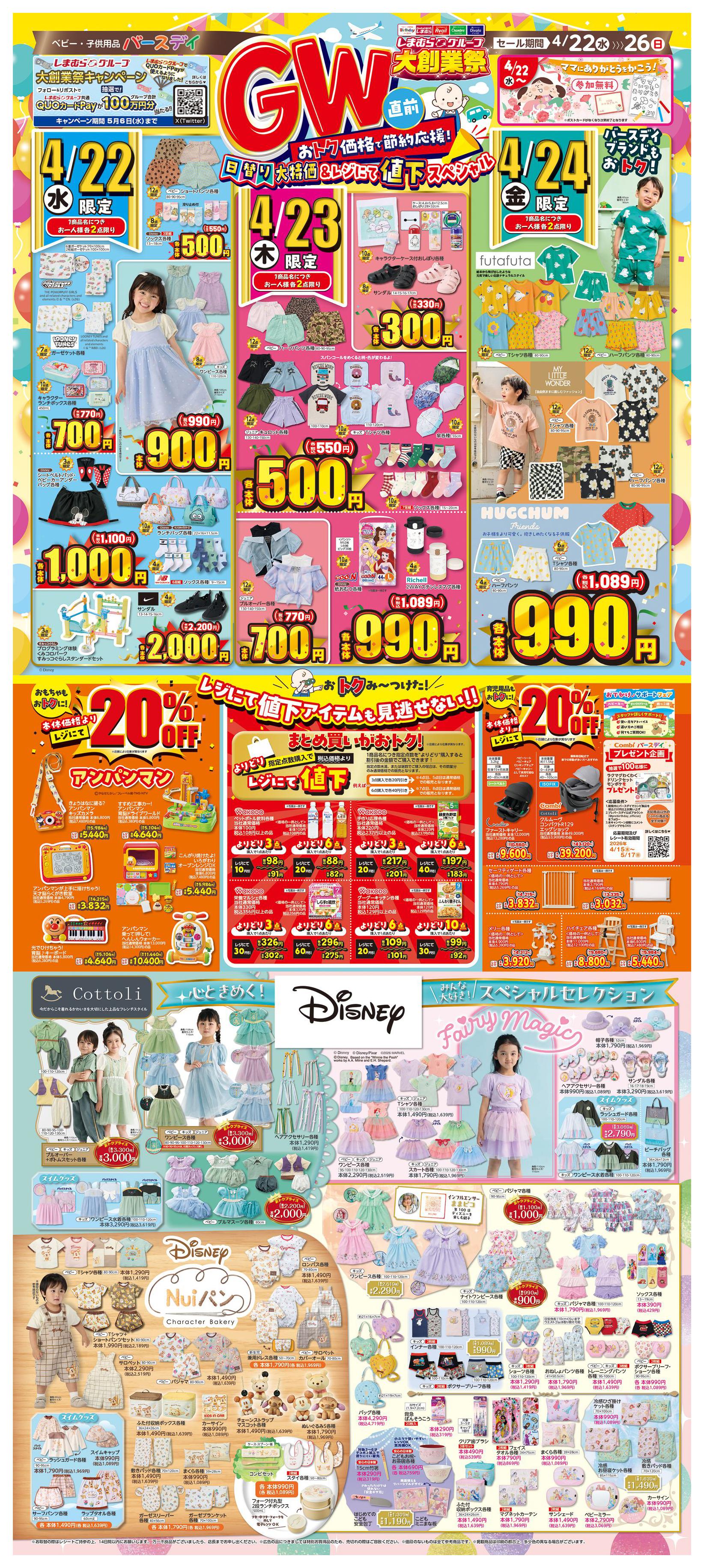 バースデイ北郷店今週のチラシ(2026年4月20日〜4月26日)