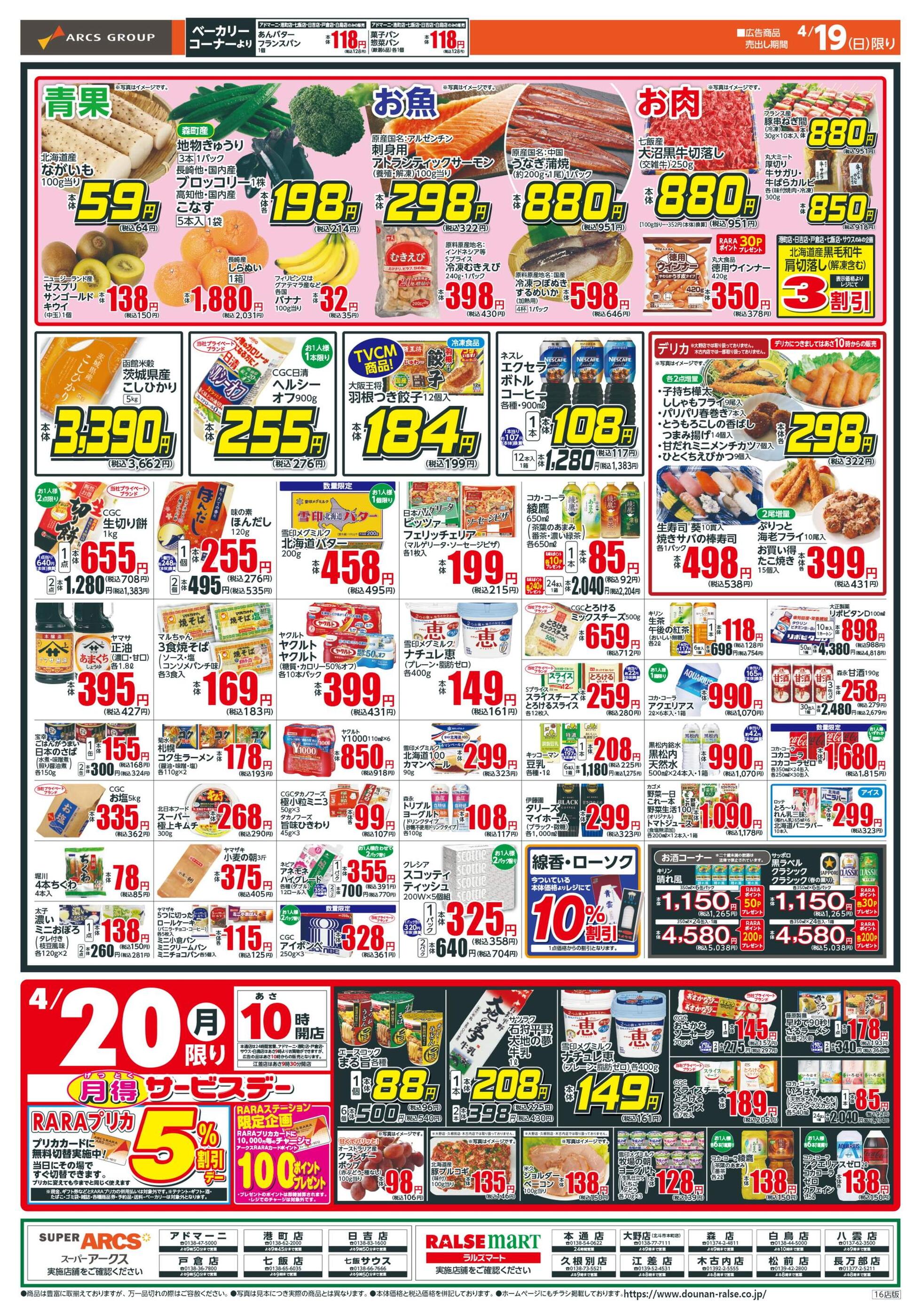 スーパーアークス七飯サウス今週のチラシ(2026年4月13日〜4月19日)
