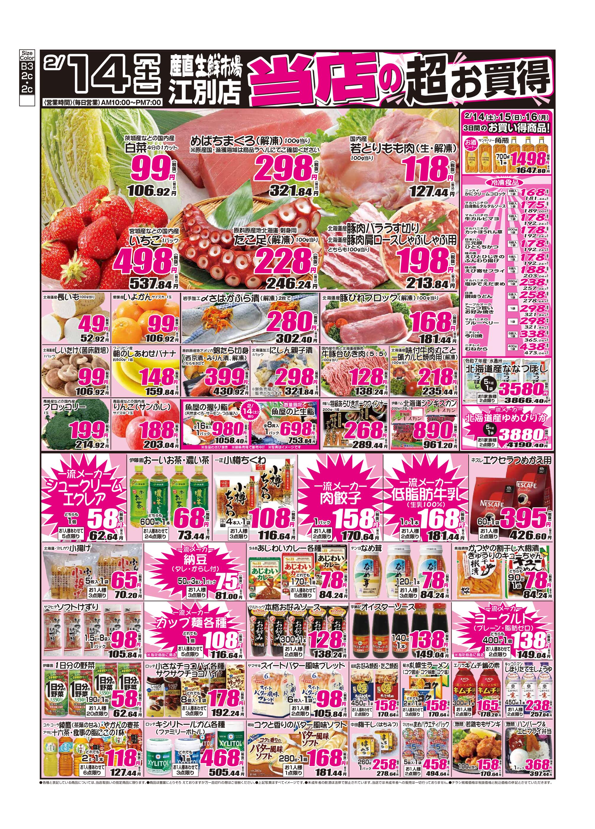 産直生鮮市場 江別店今週のチラシ(2026年2月9日〜2月15日)