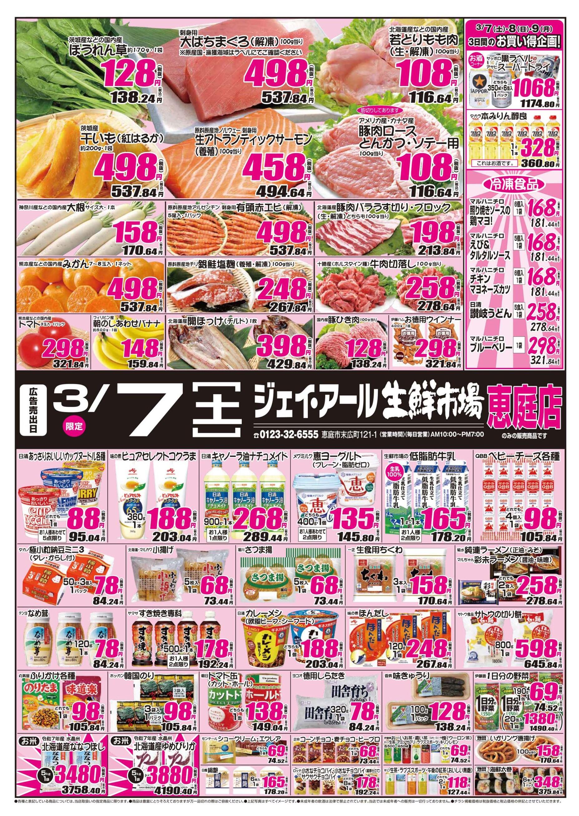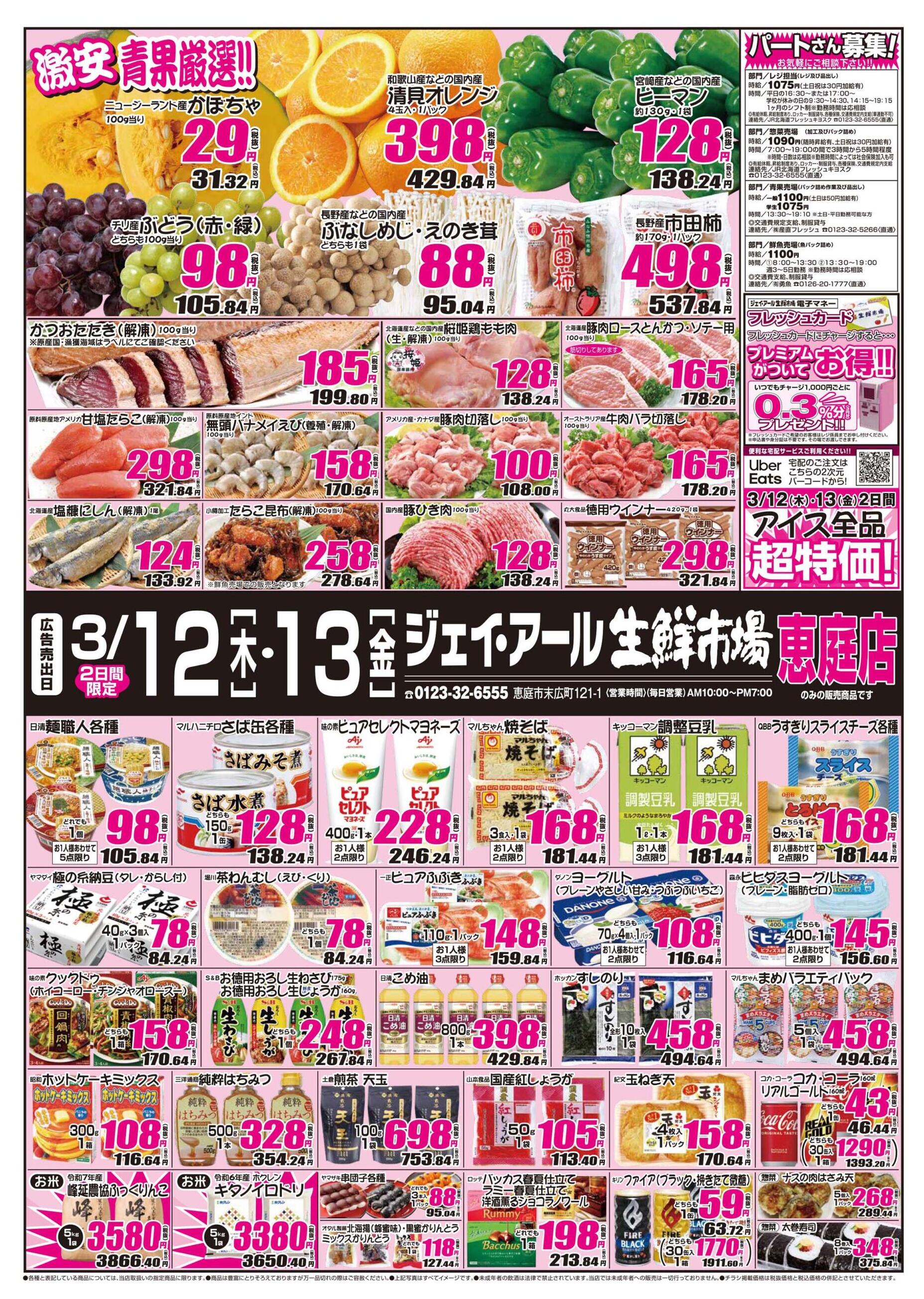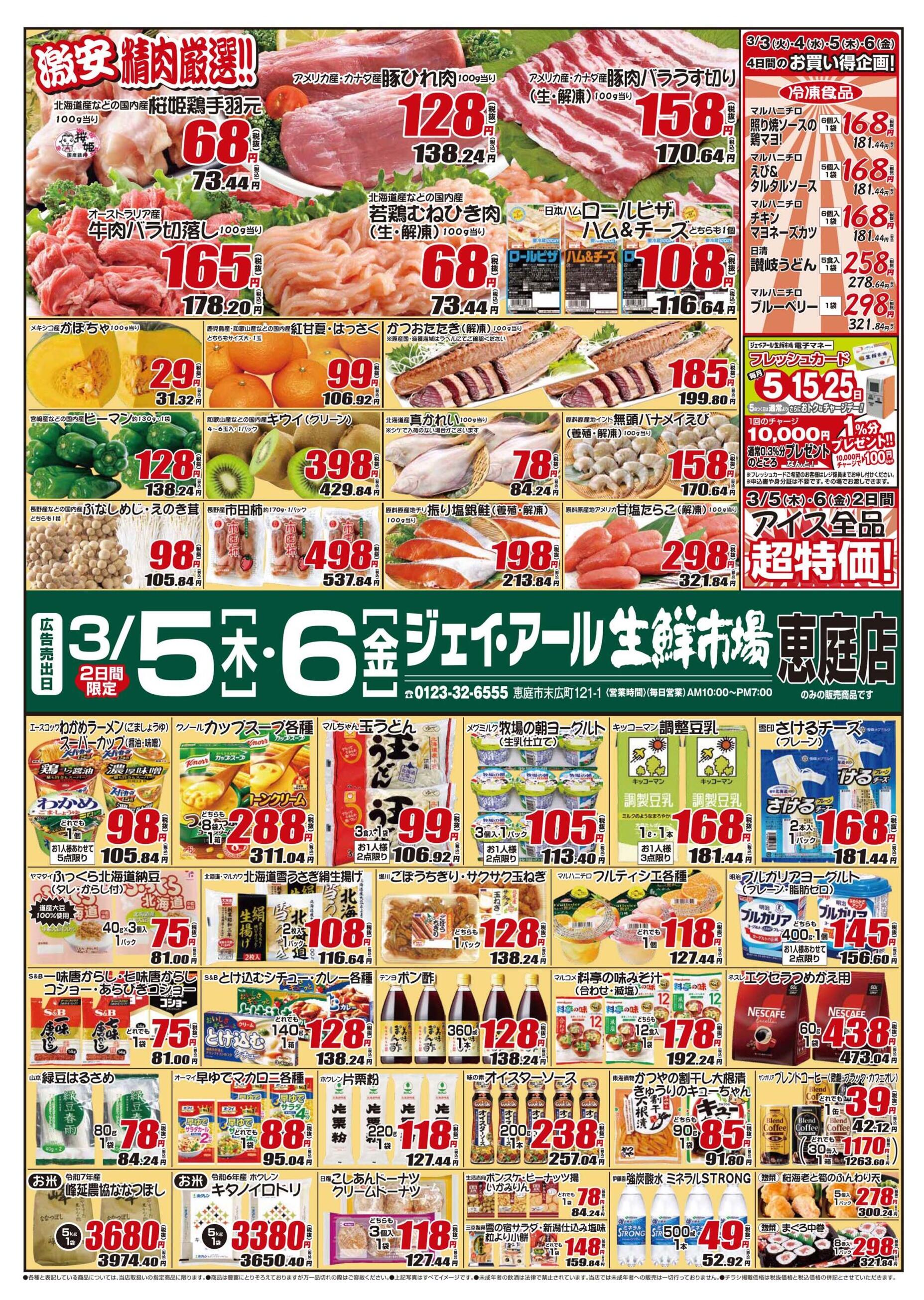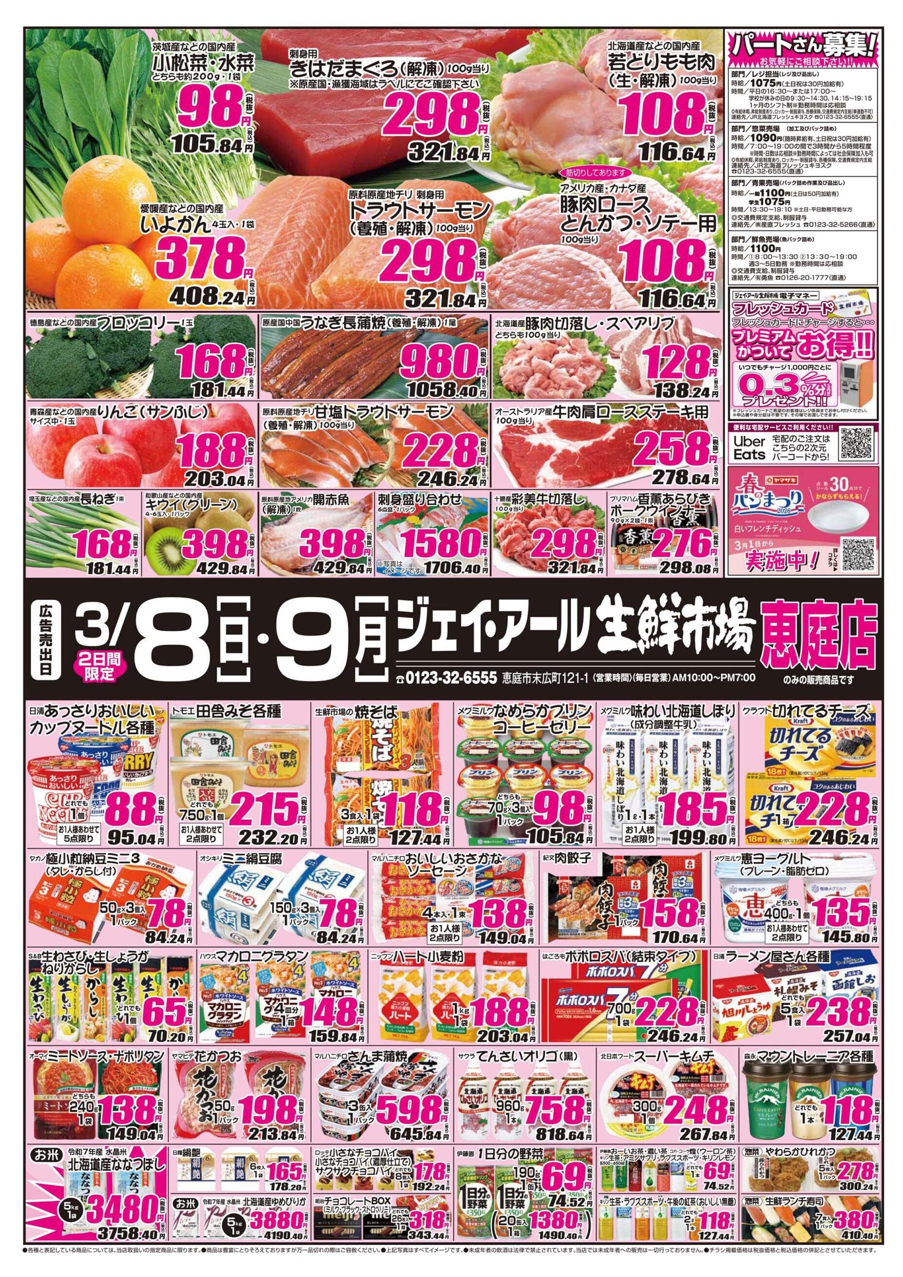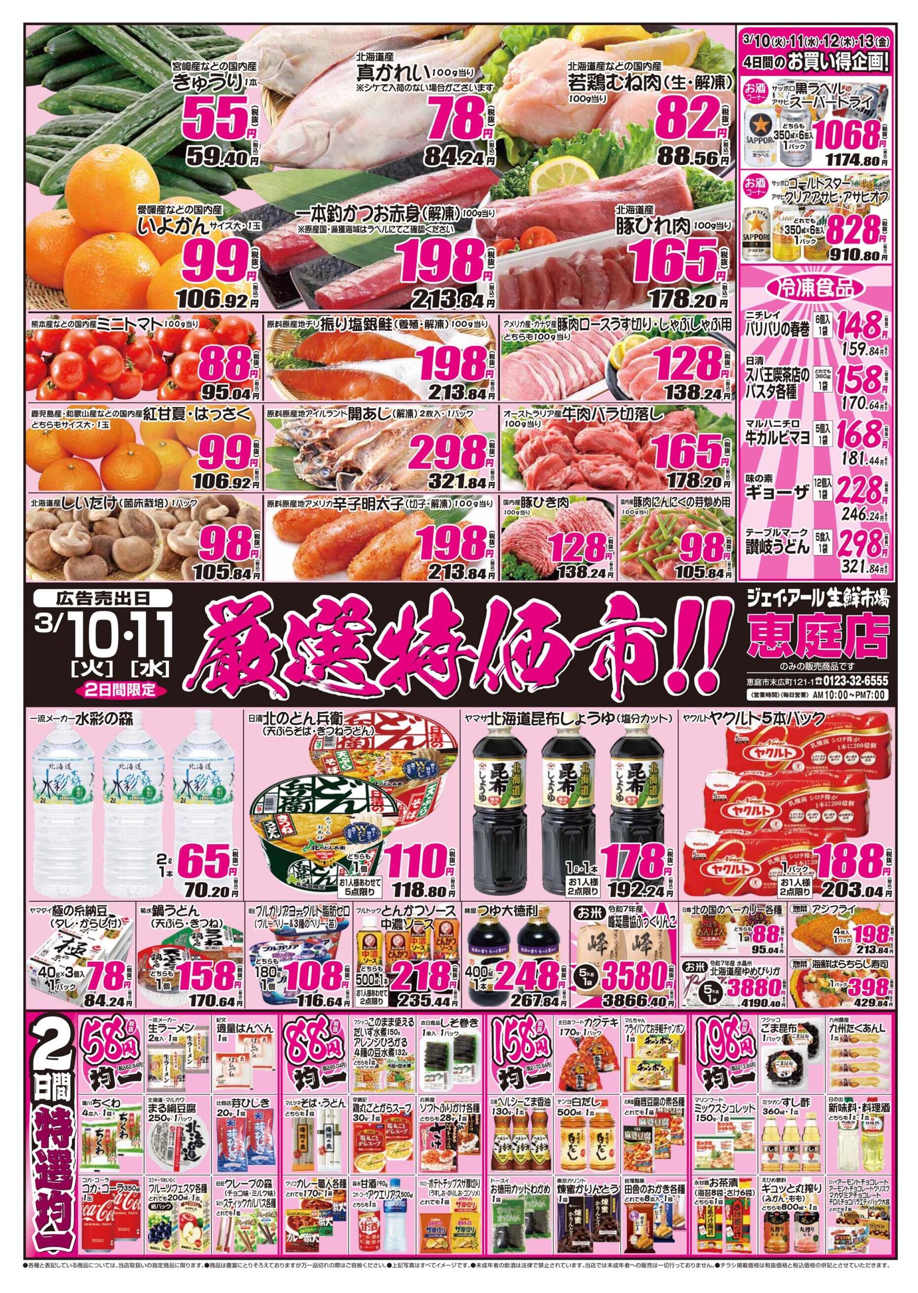 ジェイ・アール生鮮市場恵庭店今週のチラシ(2026年3月9日〜3月15日)