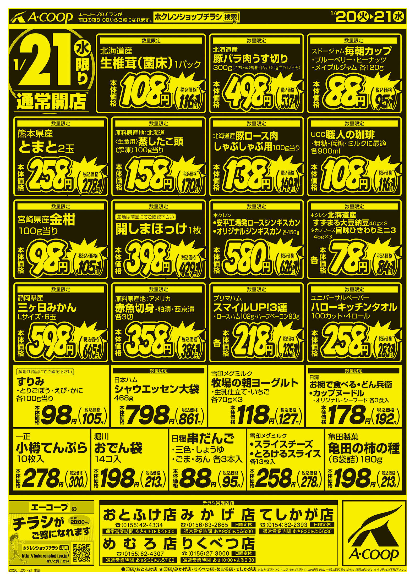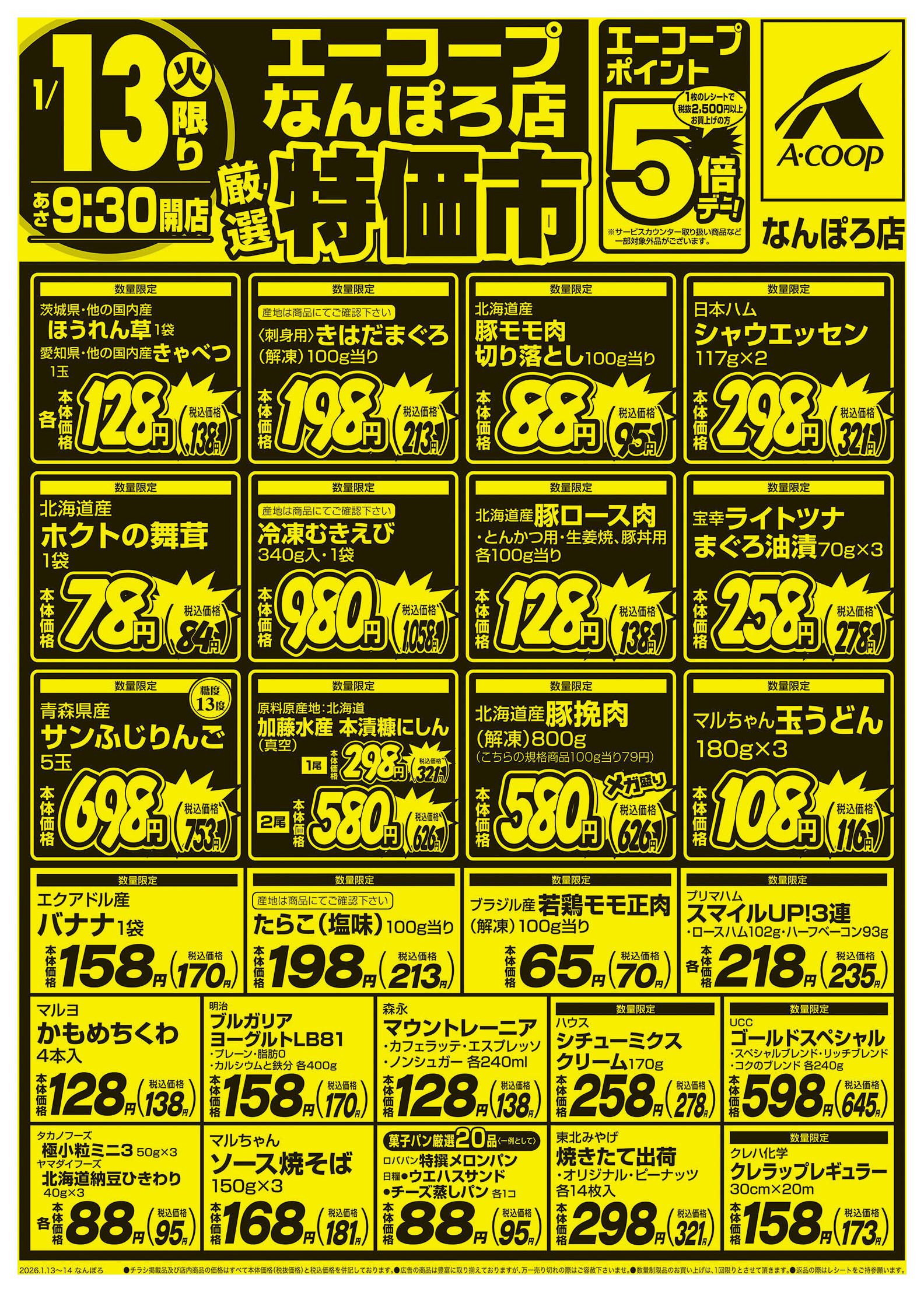エーコープなんぽろ店今週のチラシ(2026年1月19日〜1月25日)