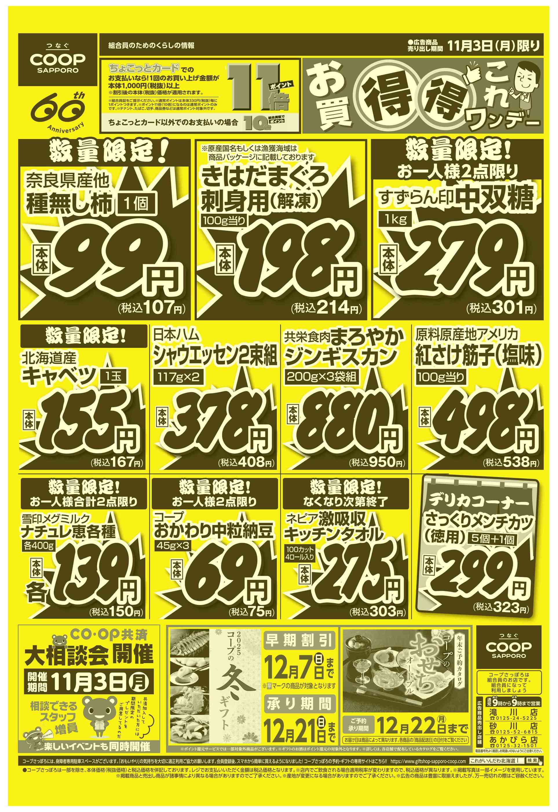 コープさっぽろ砂川店今週のチラシ(2025年11月10日〜11月16日)