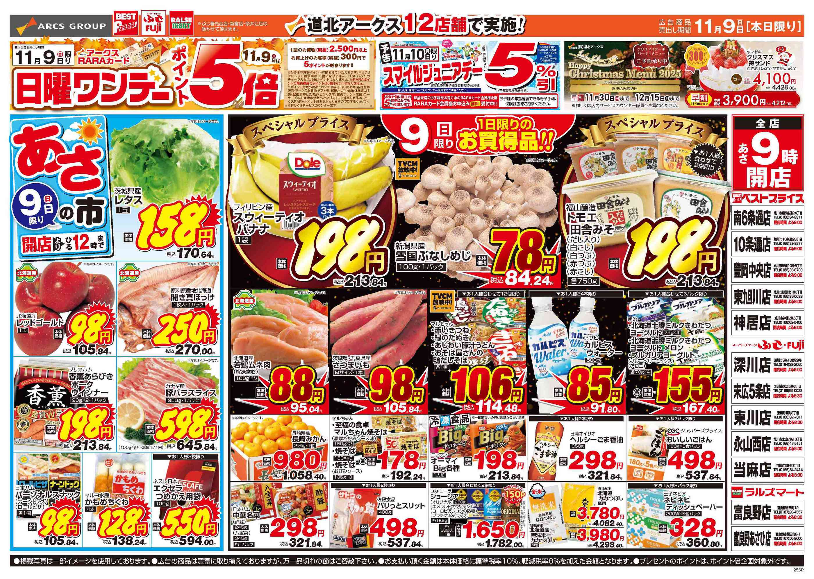 スーパーチェーンふじ深川店今週のチラシ(2025年11月10日〜11月16日)