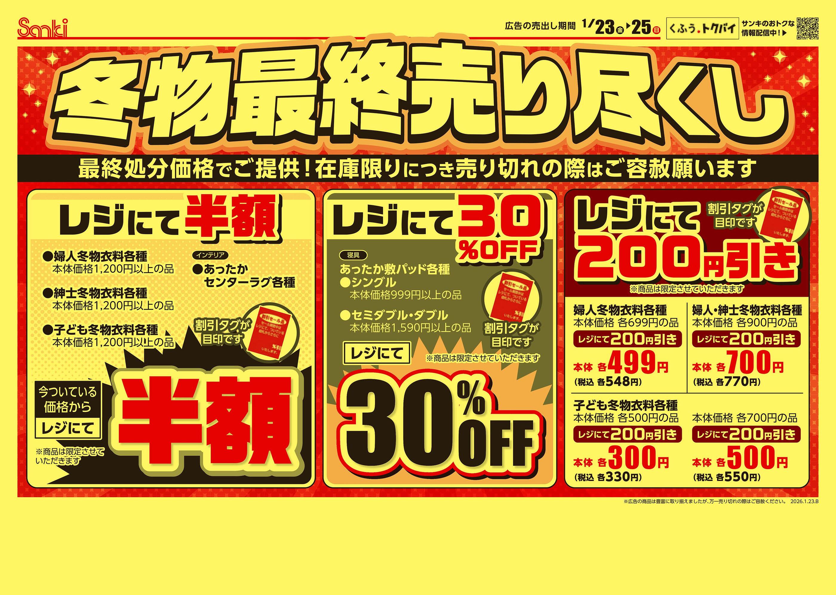 サンキステイ店2026-01-23更新
