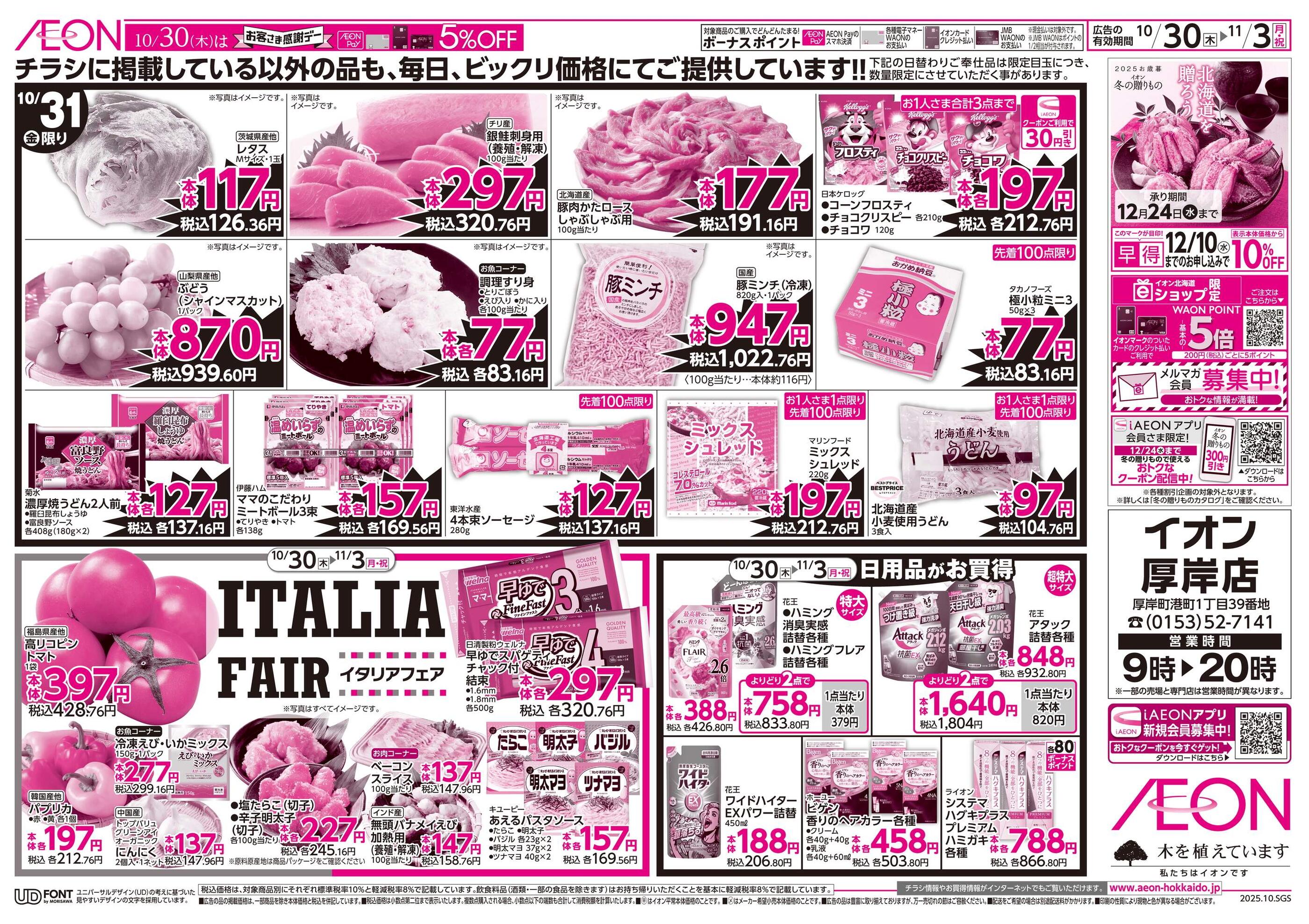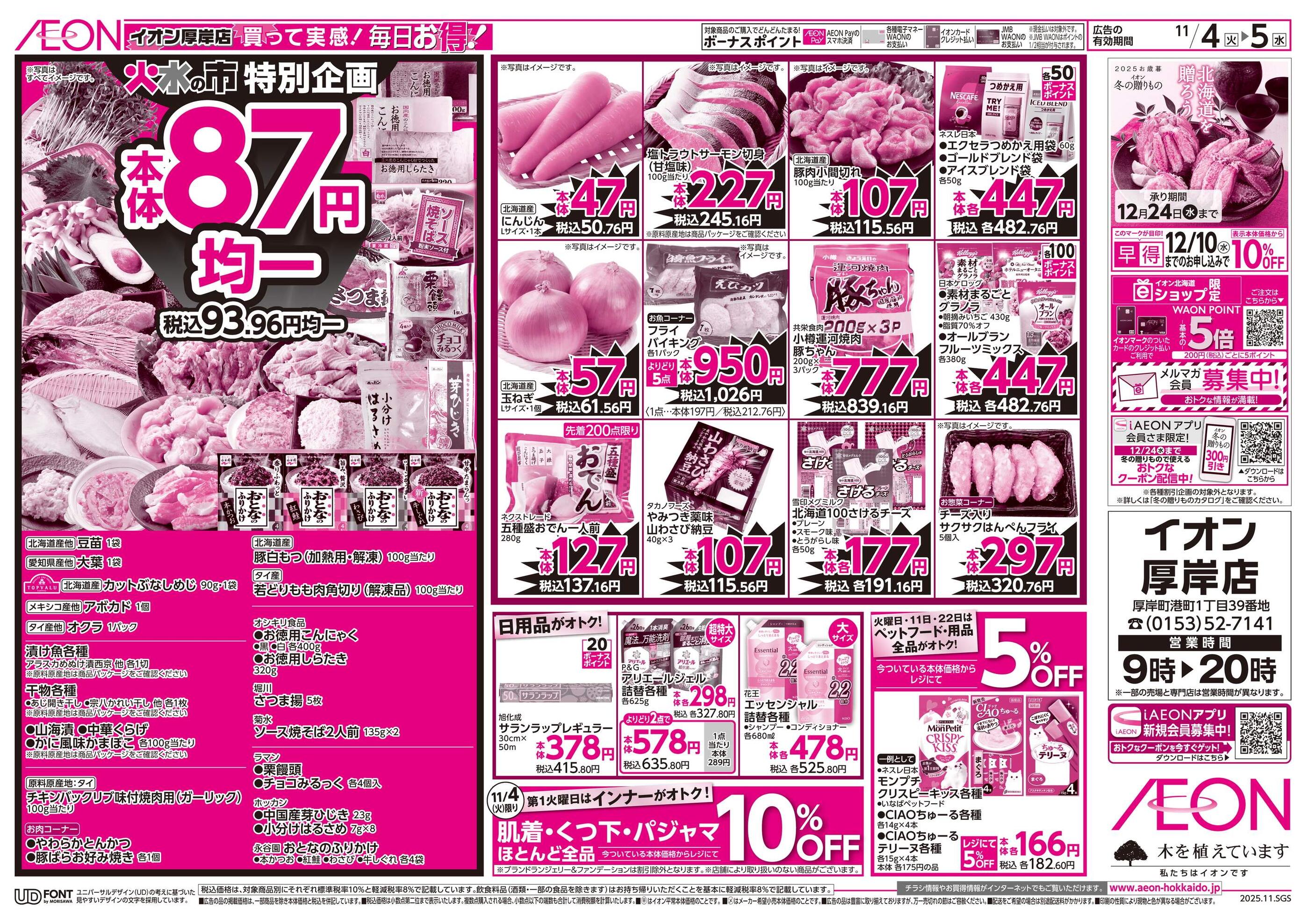 イオン厚岸店今週のチラシ(2025年11月3日〜11月9日)