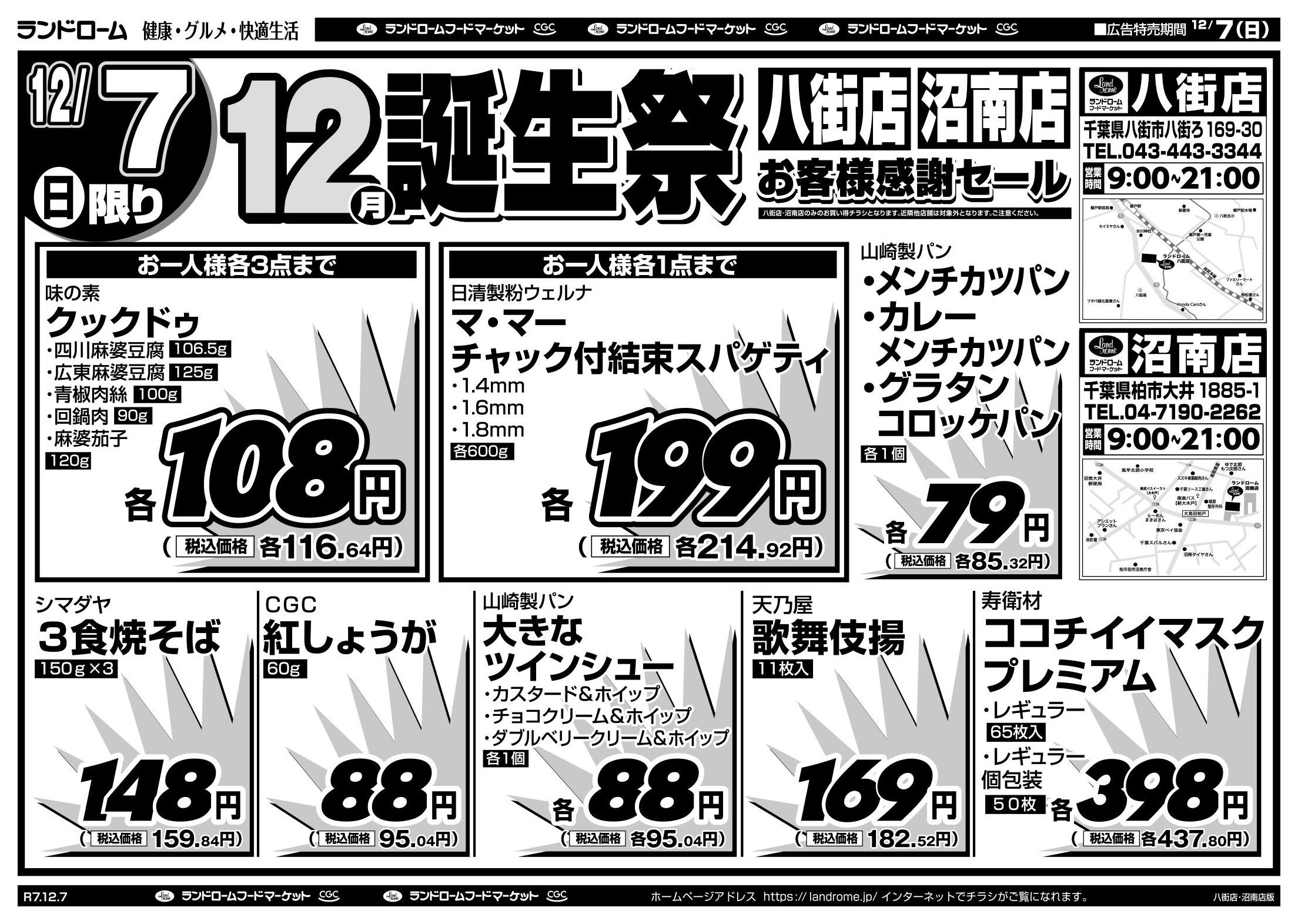 ランドローム八街店今週のチラシ(2025年12月22日〜12月28日)