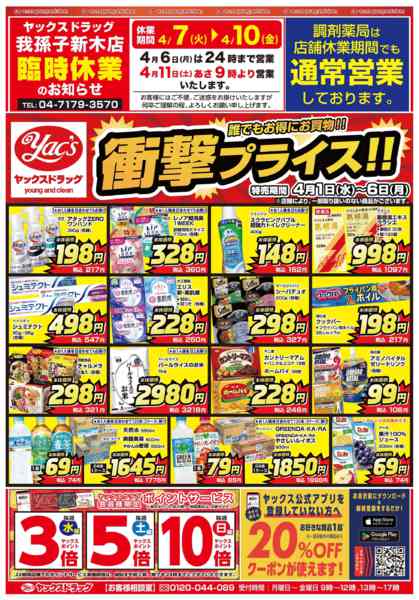 ※「店舗の掲載内容について」チラシガイドに掲載している情報は、独自に調査した内容及びユーザーから頂いた情報を掲載しています。お気づきの点がございましたら「お問い合わせ」よりご連絡ください。また店舗の営業状況、商品に関するお問い合わせは直接店舗事業者にご確認ください。