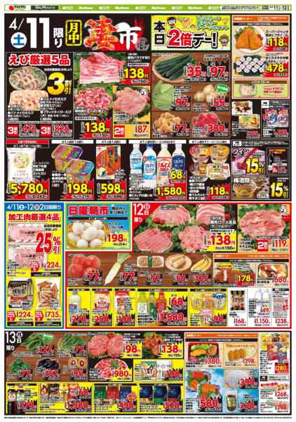 特売やセール情報など最新のチラシを掲載中。(2種類、4枚のチラシを掲載しています)