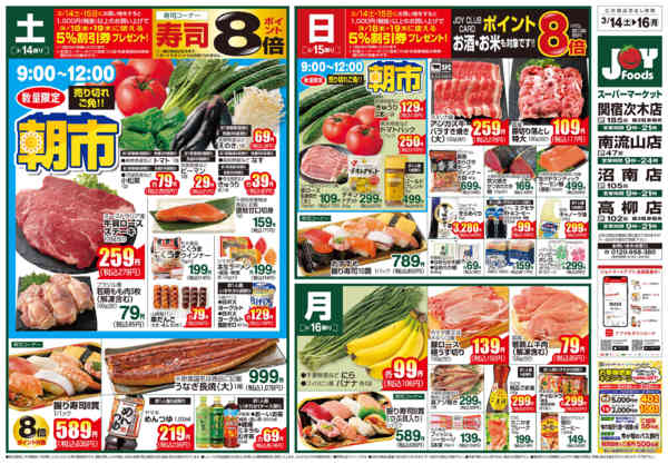 特売やセール情報など最新のチラシを掲載中。(3種類、5枚のチラシを掲載しています)