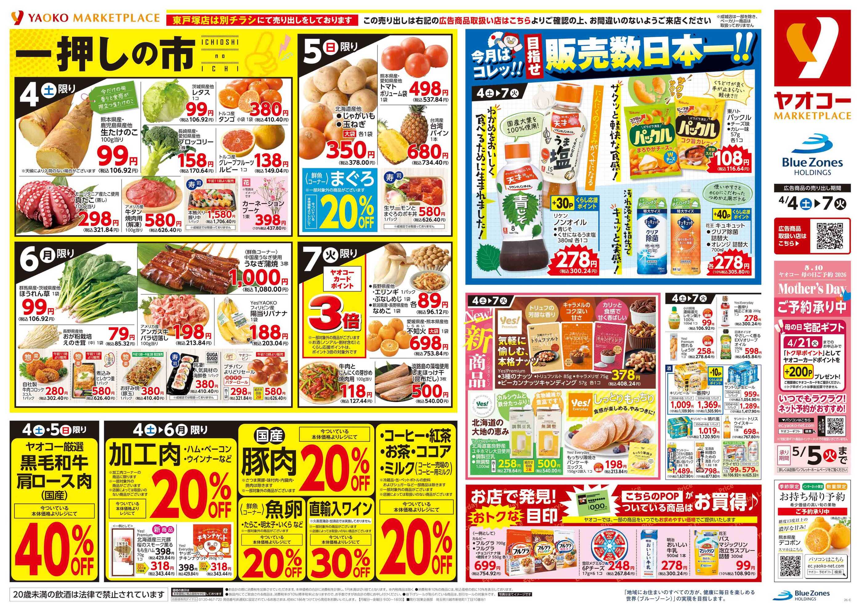 ヤオコー船橋三山店今週のチラシ(2026年3月30日〜4月5日)