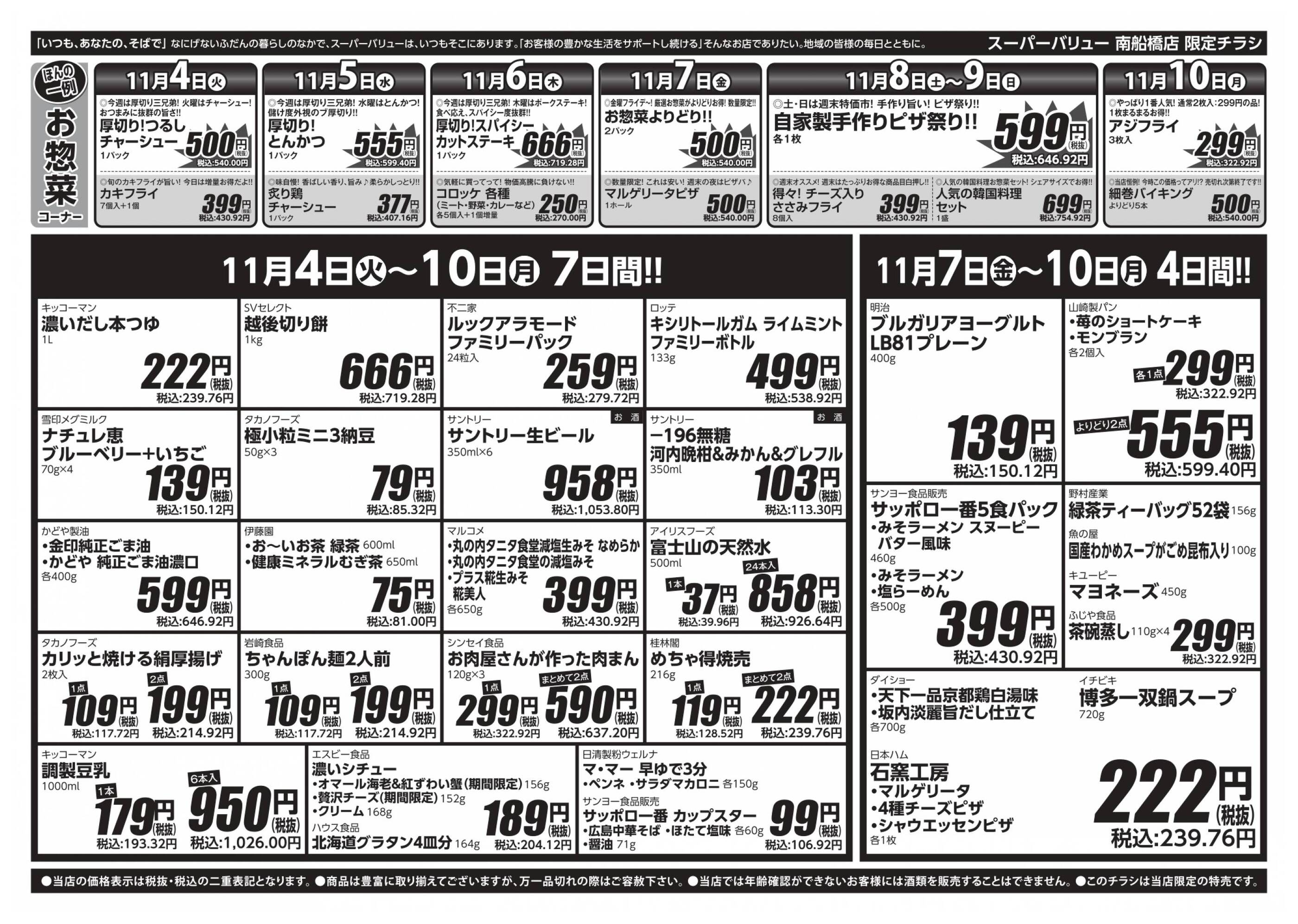 スーパーバリュー南船橋店今週のチラシ(2025年11月3日〜11月9日)