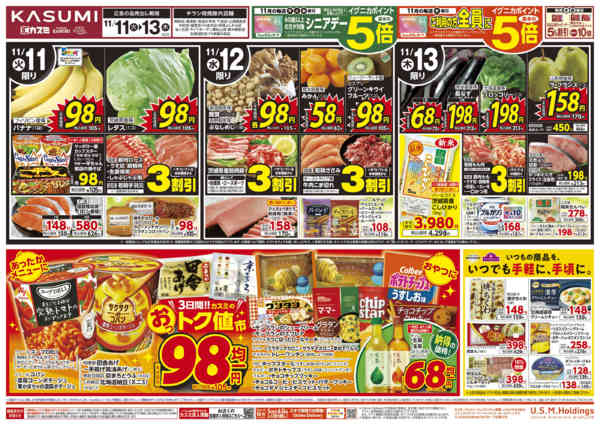 特売やセール情報など最新のチラシを掲載中。(5種類、5枚のチラシを掲載しています)