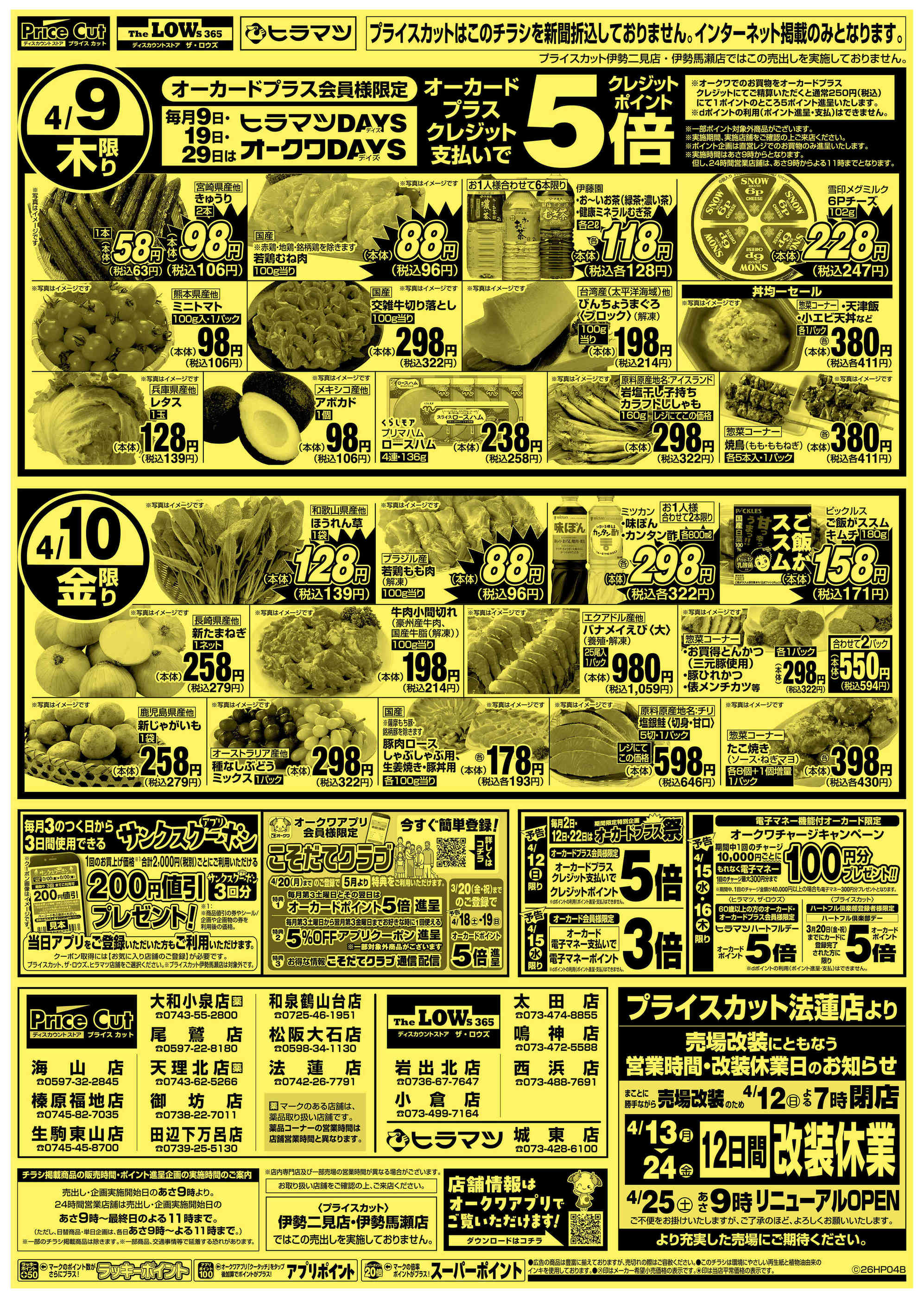 プライスカット田辺下万呂店今週のチラシ(2026年4月13日〜4月19日)