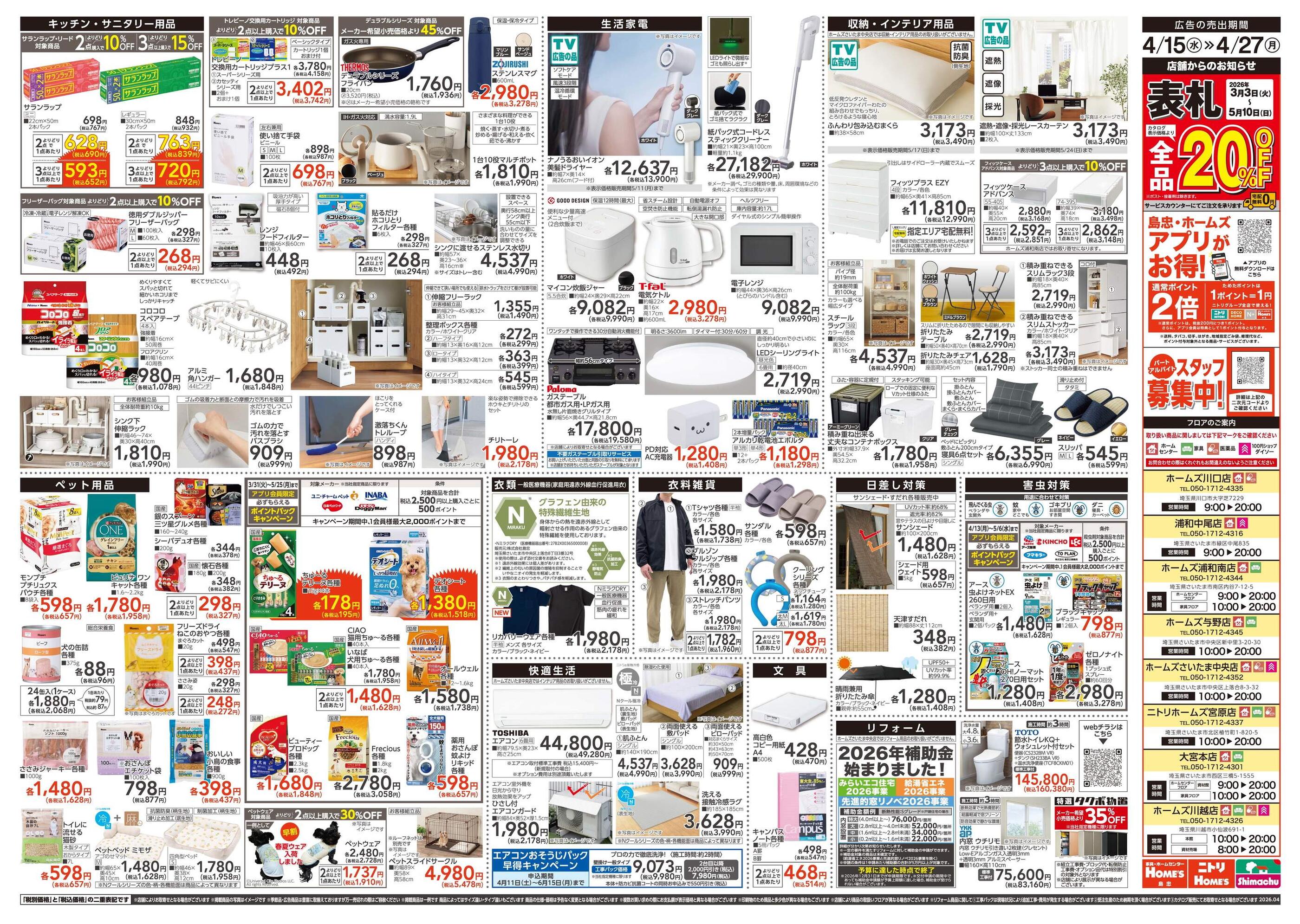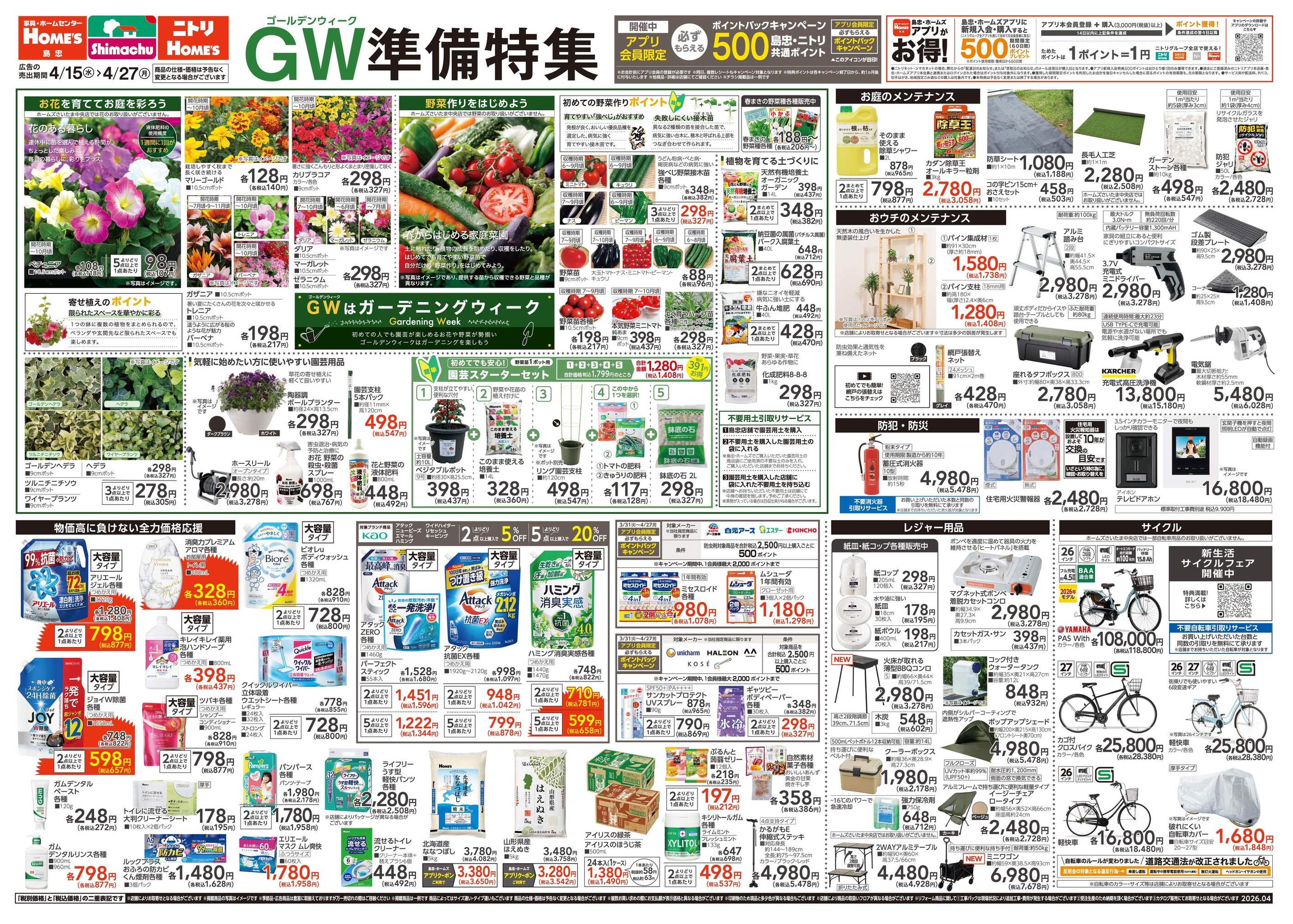 島忠ホームズ与野店今週のチラシ(2026年4月13日〜4月19日)