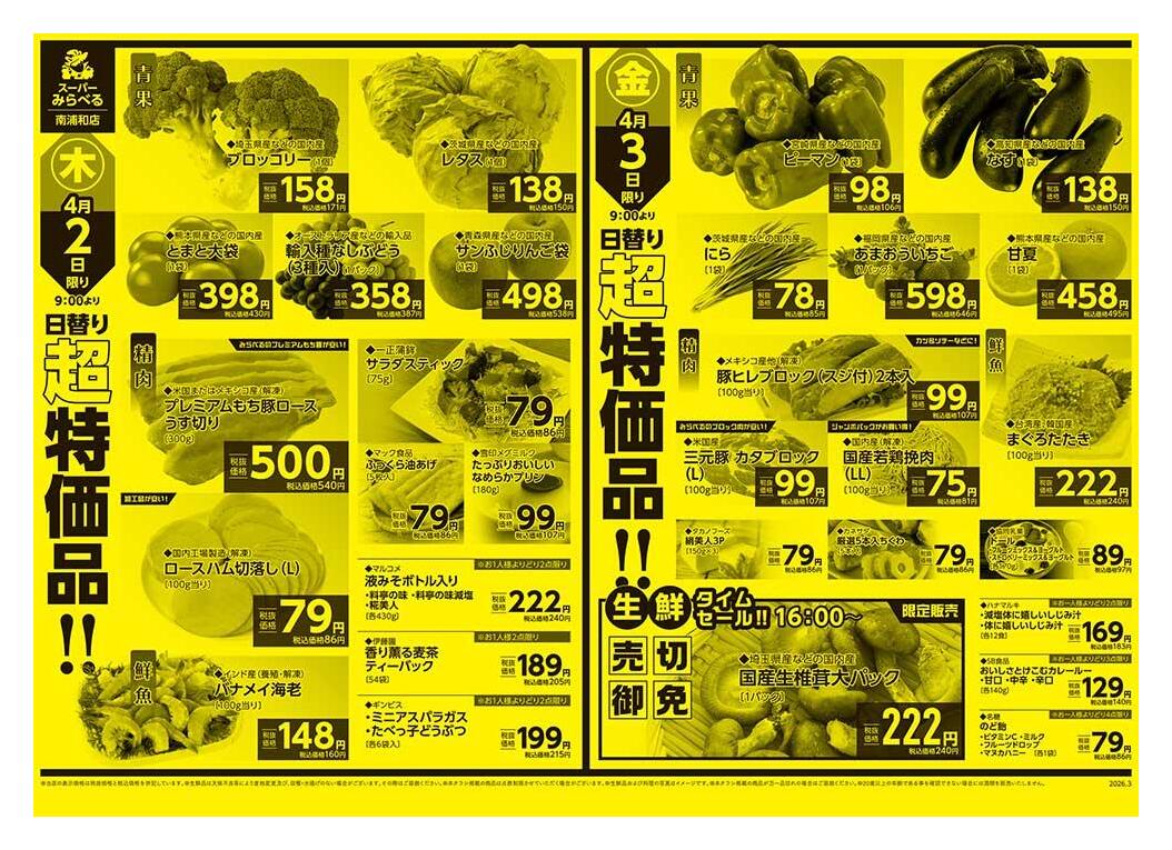 スーパーみらべる南浦和店今週のチラシ(2026年3月30日〜4月5日)