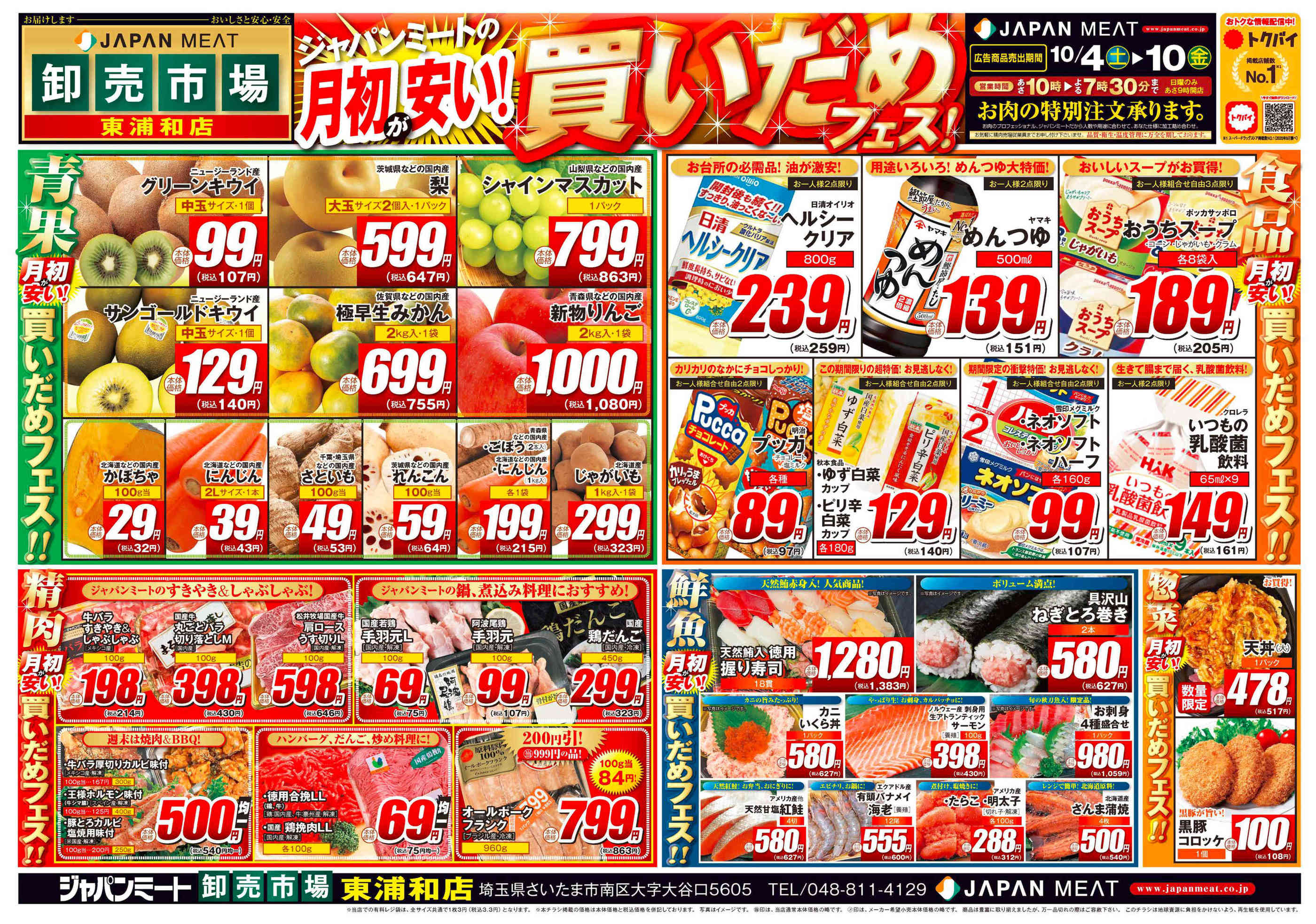 ジャパンミート卸売市場東浦和店今週のチラシ(2025年10月20日〜10月26日)