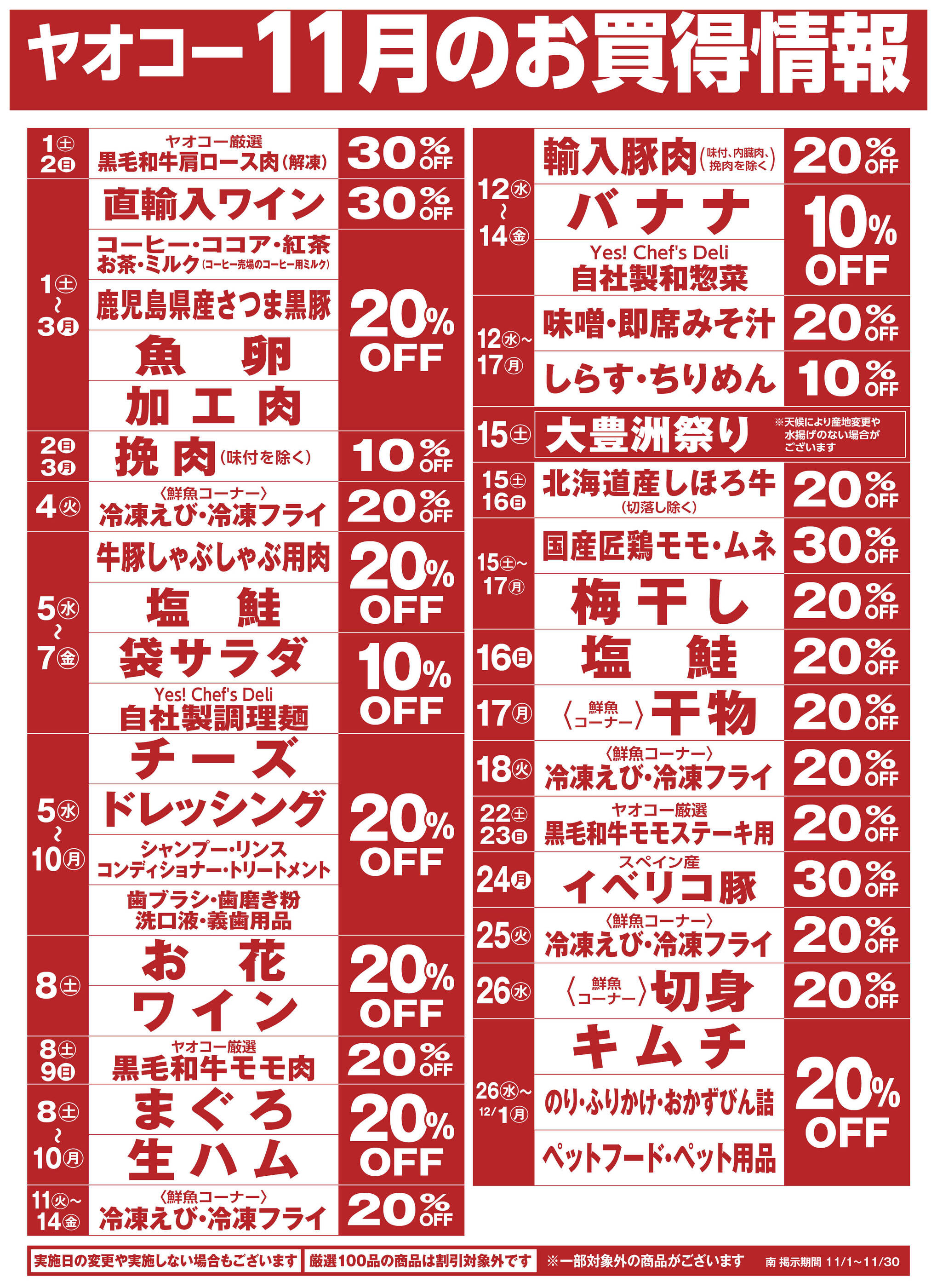 ヤオコー大宮宮原店今週のチラシ(2025年11月3日〜11月9日)