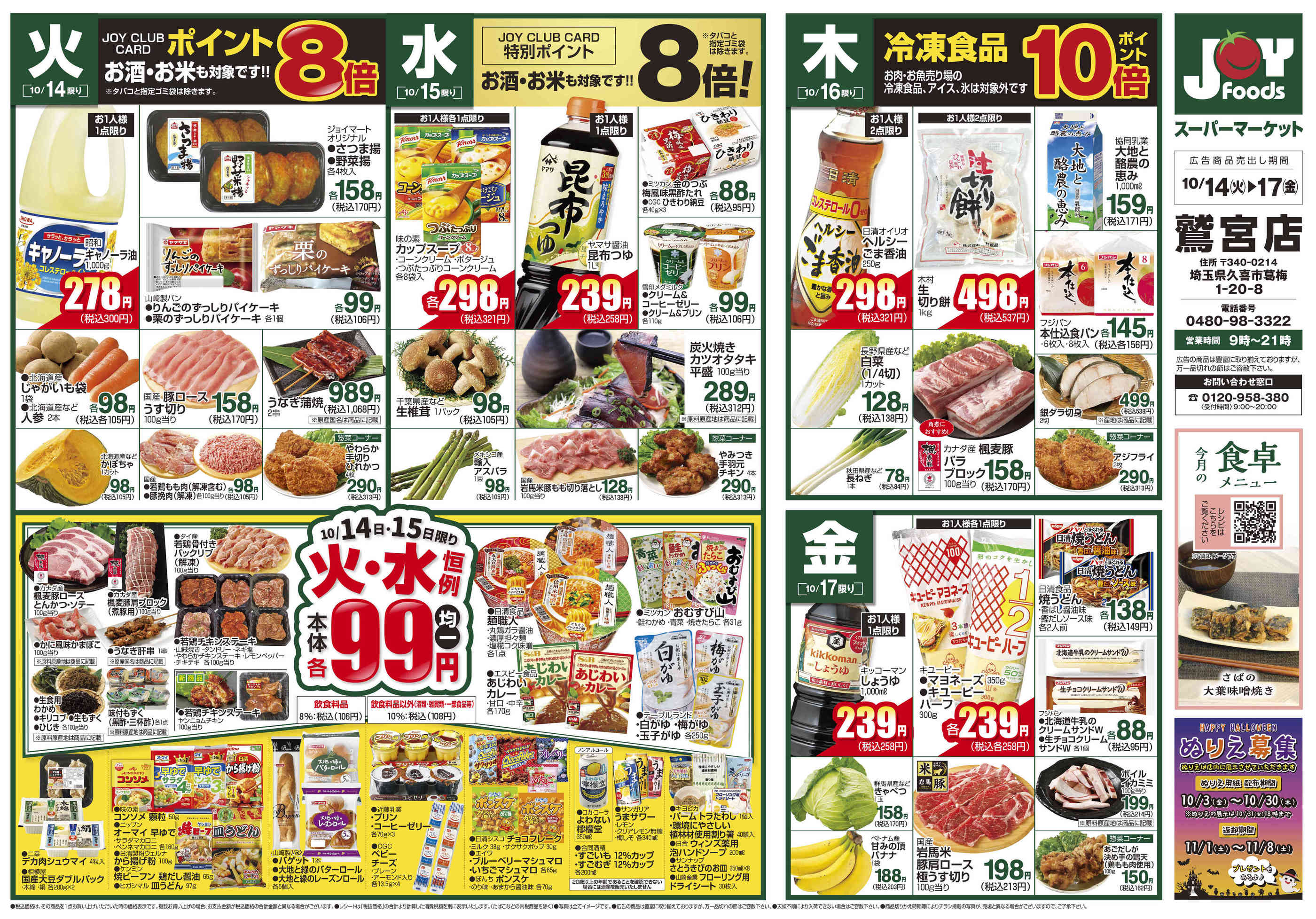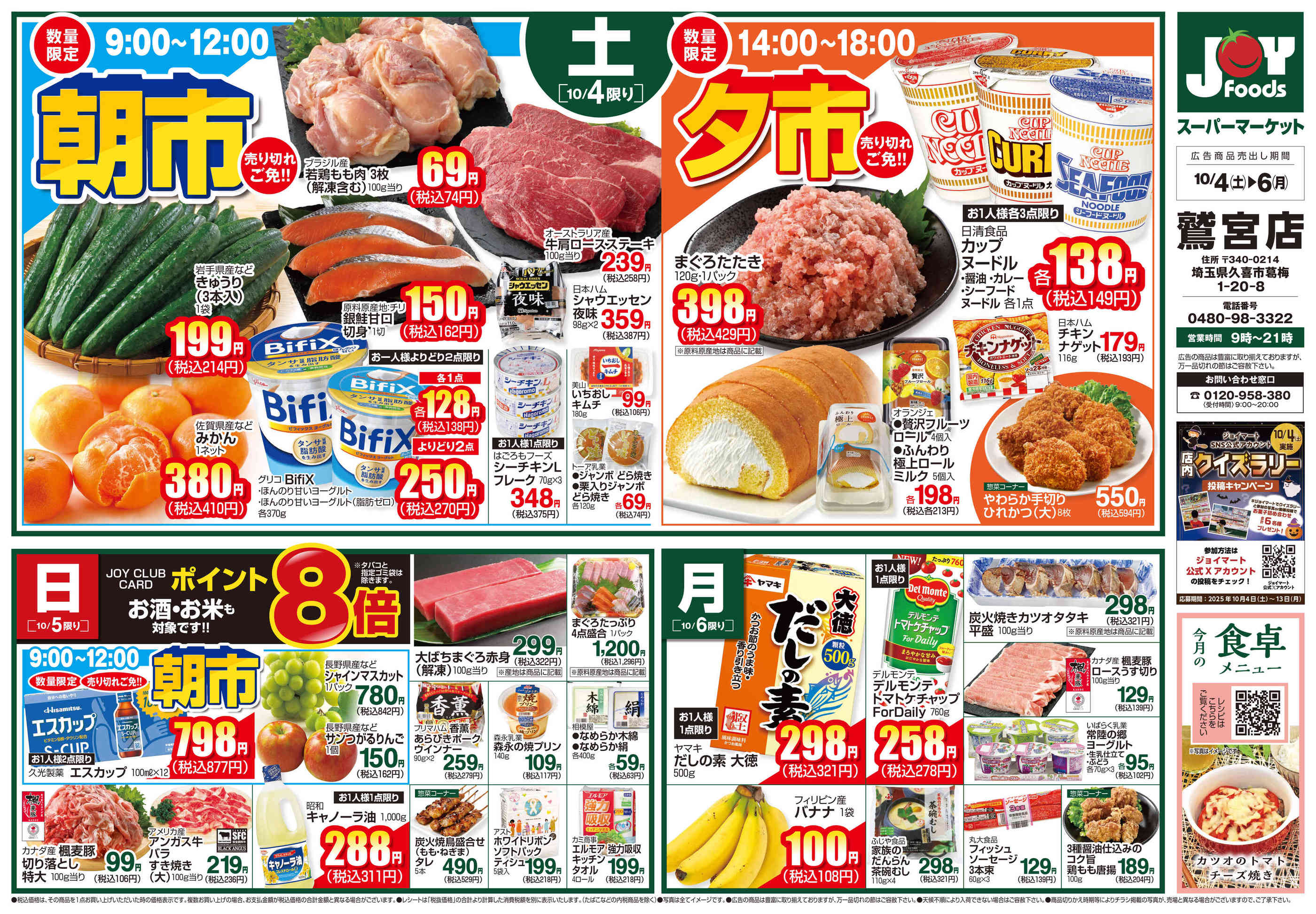 ジョイフーズ鷲宮店今週のチラシ(2025年10月13日〜10月19日)