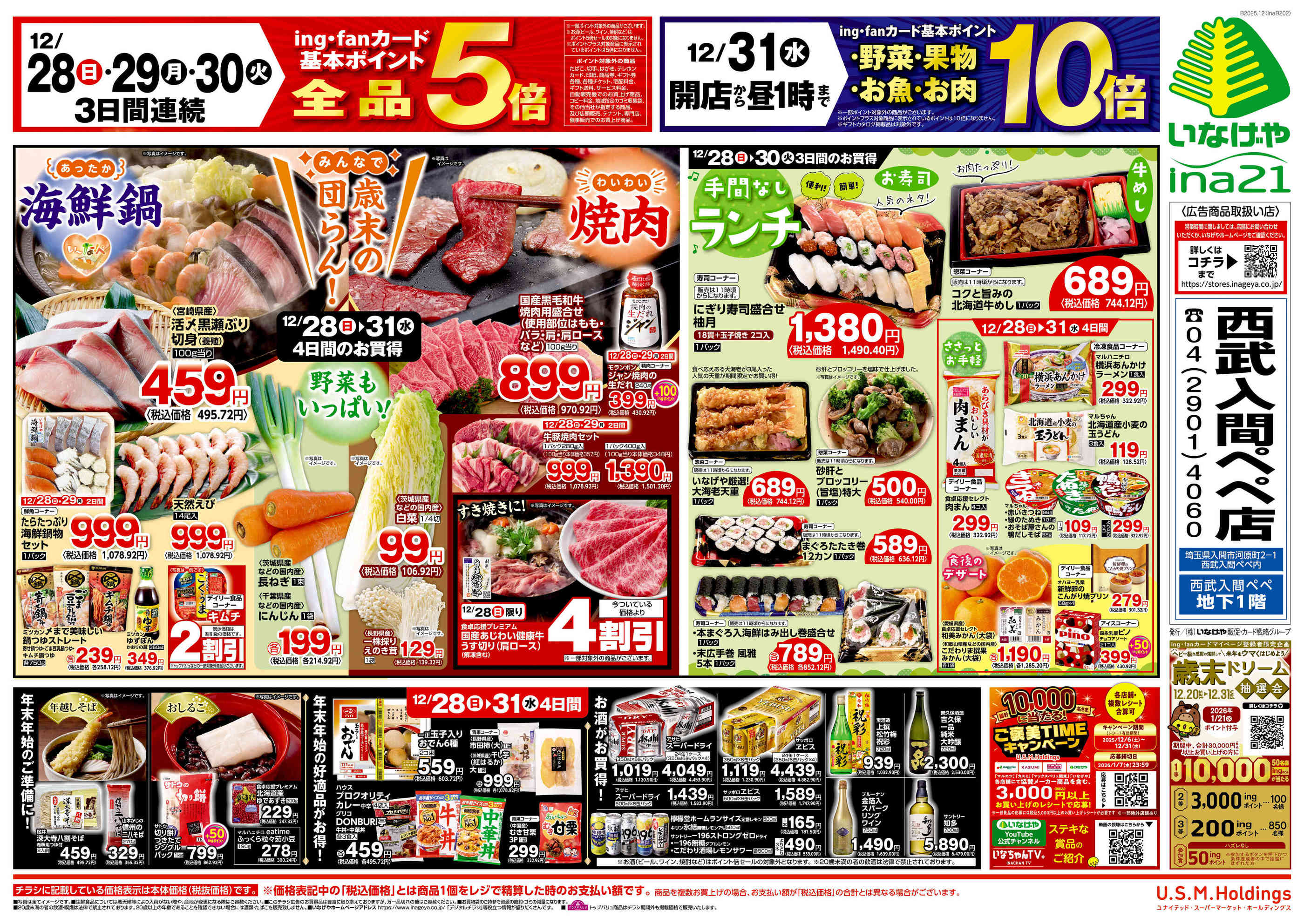 いなげやina21西武入間ペペ店今週のチラシ(2025年12月22日〜12月28日)