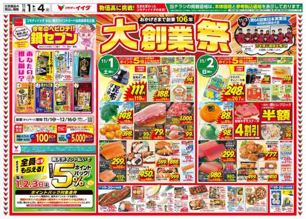 特売やセール情報など最新のチラシを掲載中。(2種類、5枚のチラシを掲載しています)
