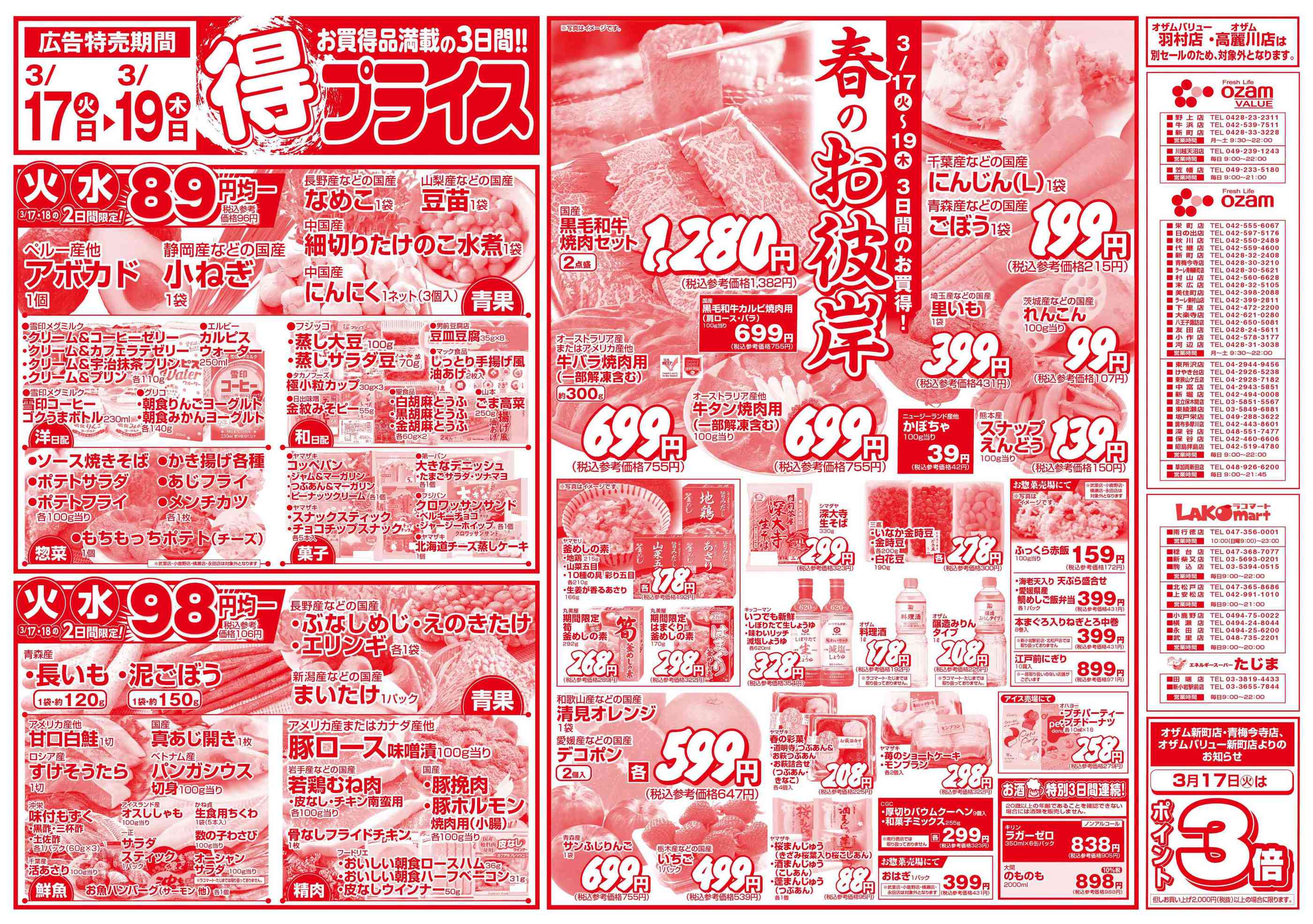 オザムバリュー川越天沼店今週のチラシ(2026年3月16日〜3月22日)
