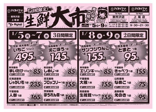 特売やセール情報など最新のチラシを掲載中。(2種類、5枚のチラシを掲載しています)