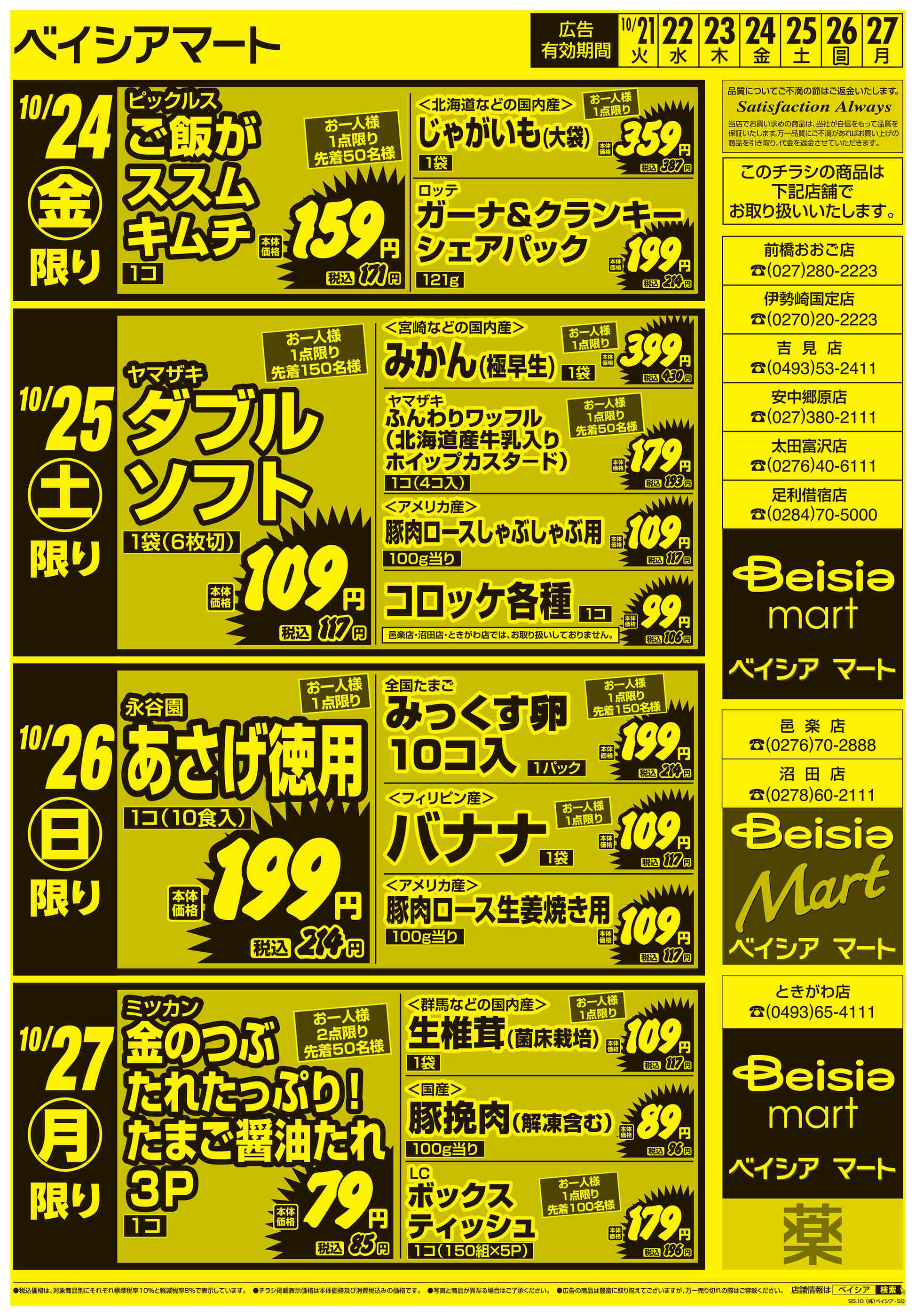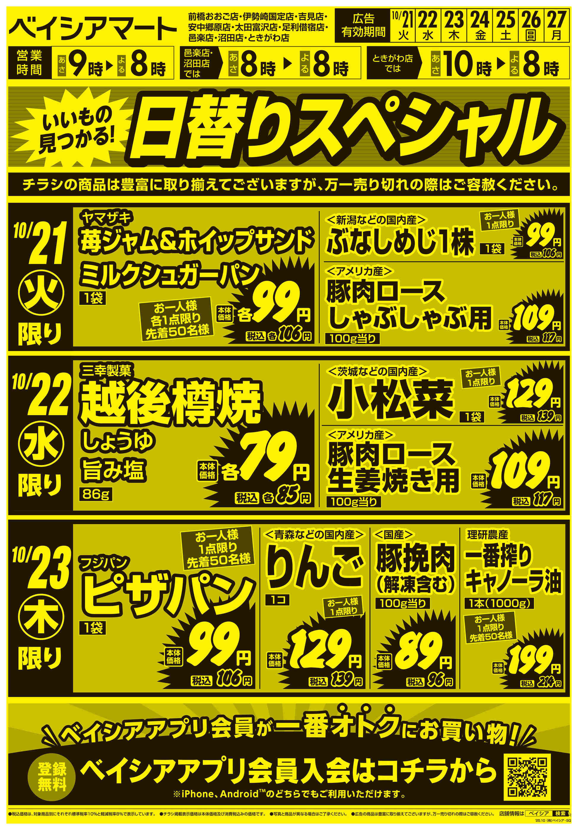ベイシアマート吉見店今週のチラシ(2025年10月20日〜10月26日)