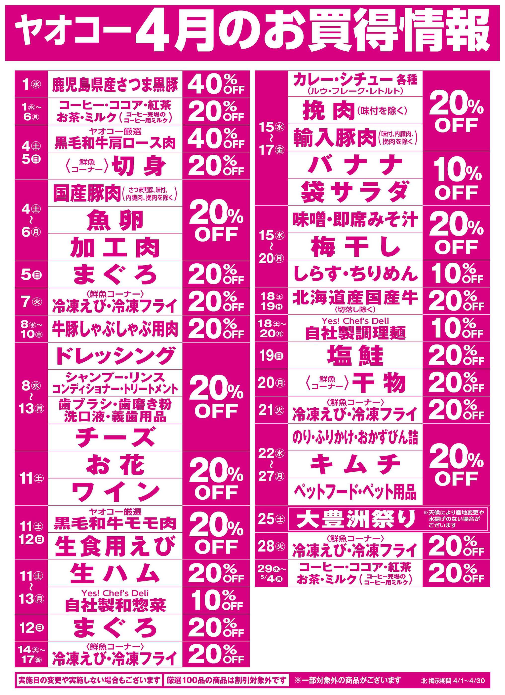 ヤオコー熊谷箱田店今週のチラシ(2026年3月30日〜4月5日)