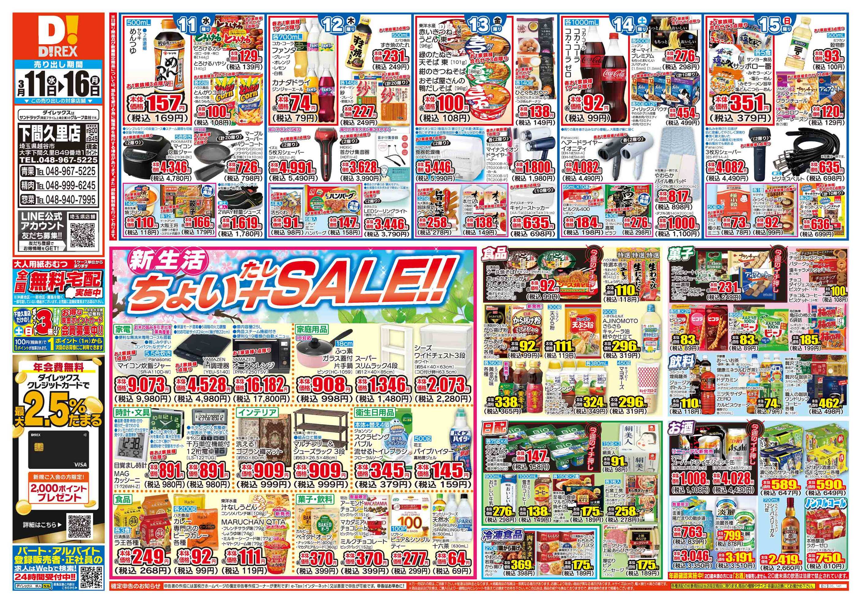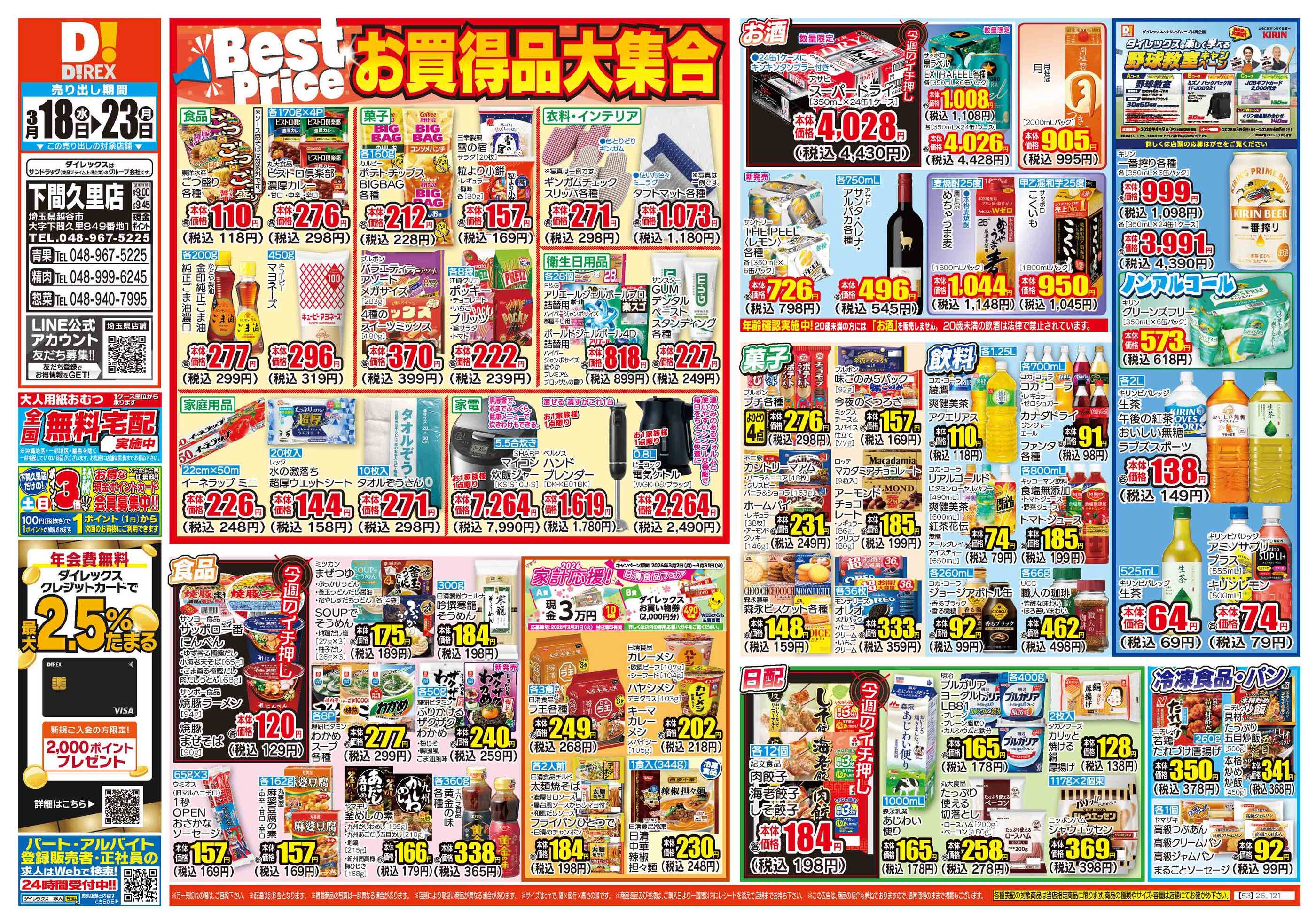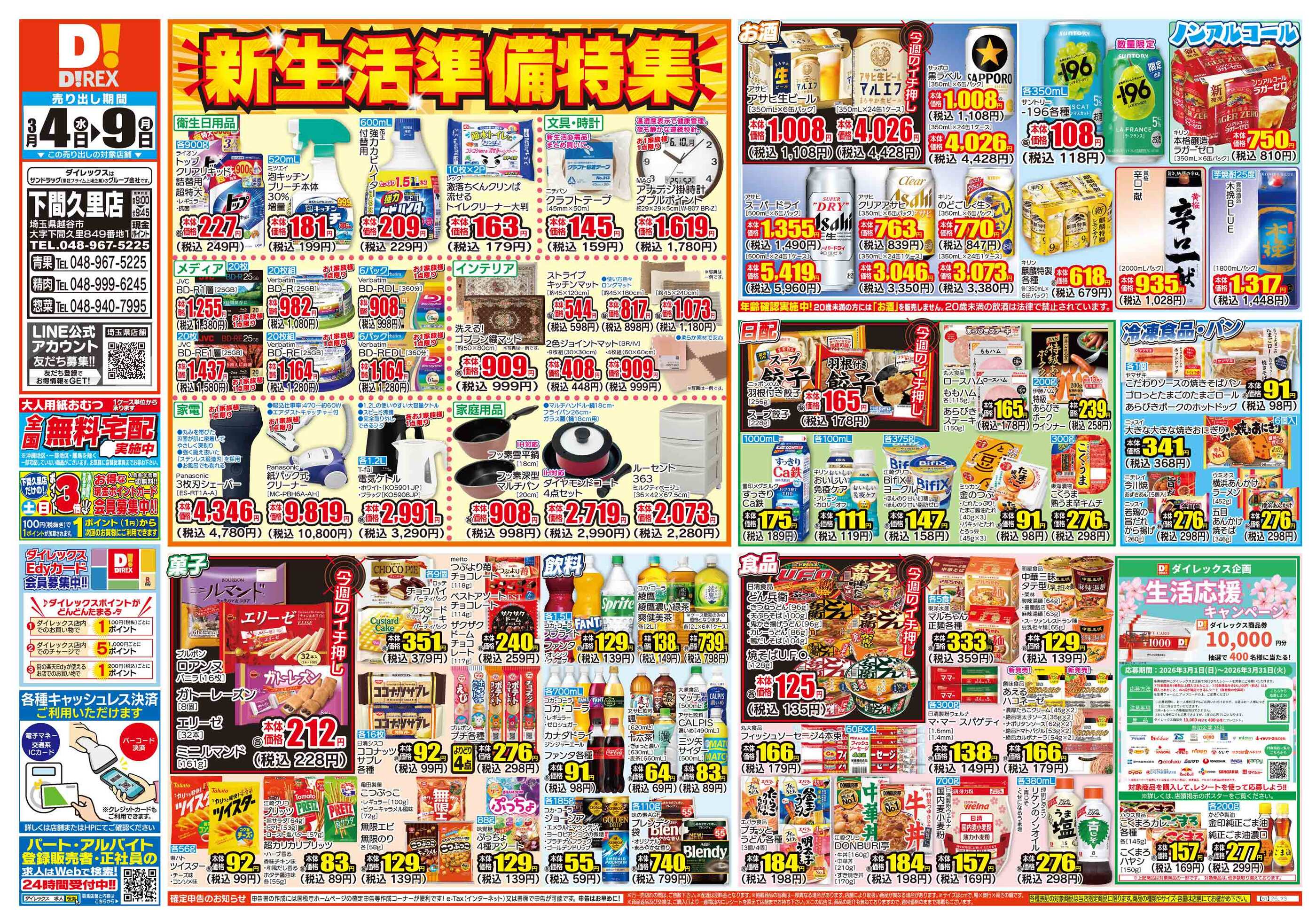 ダイレックス下間久里店今週のチラシ(2026年3月23日〜3月29日)