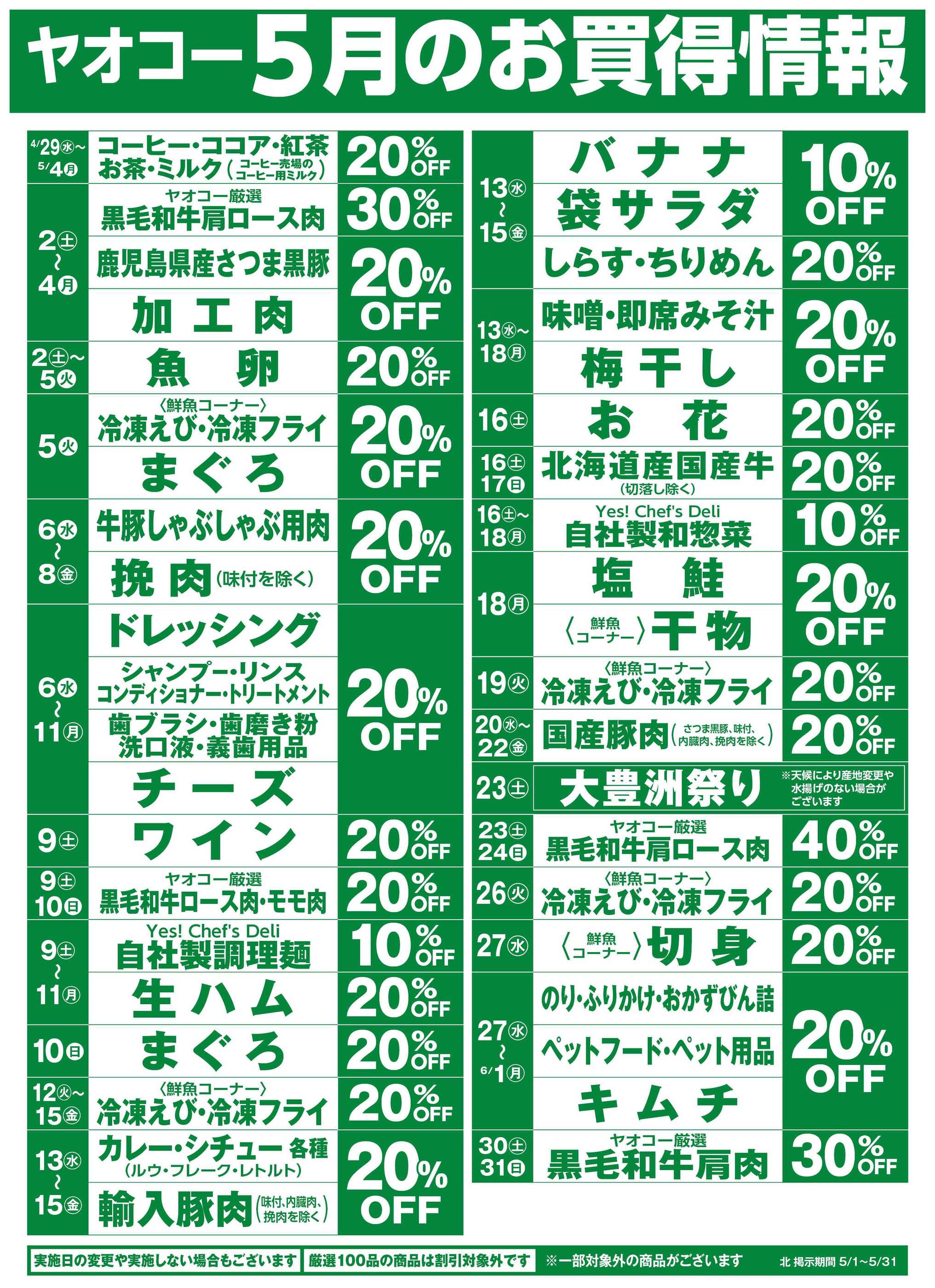 ヤオコーワカバウォーク店今週のチラシ(2026年4月27日〜5月3日)