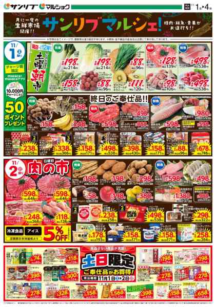 特売やセール情報など最新のチラシを掲載中。(4種類、6枚のチラシを掲載しています)