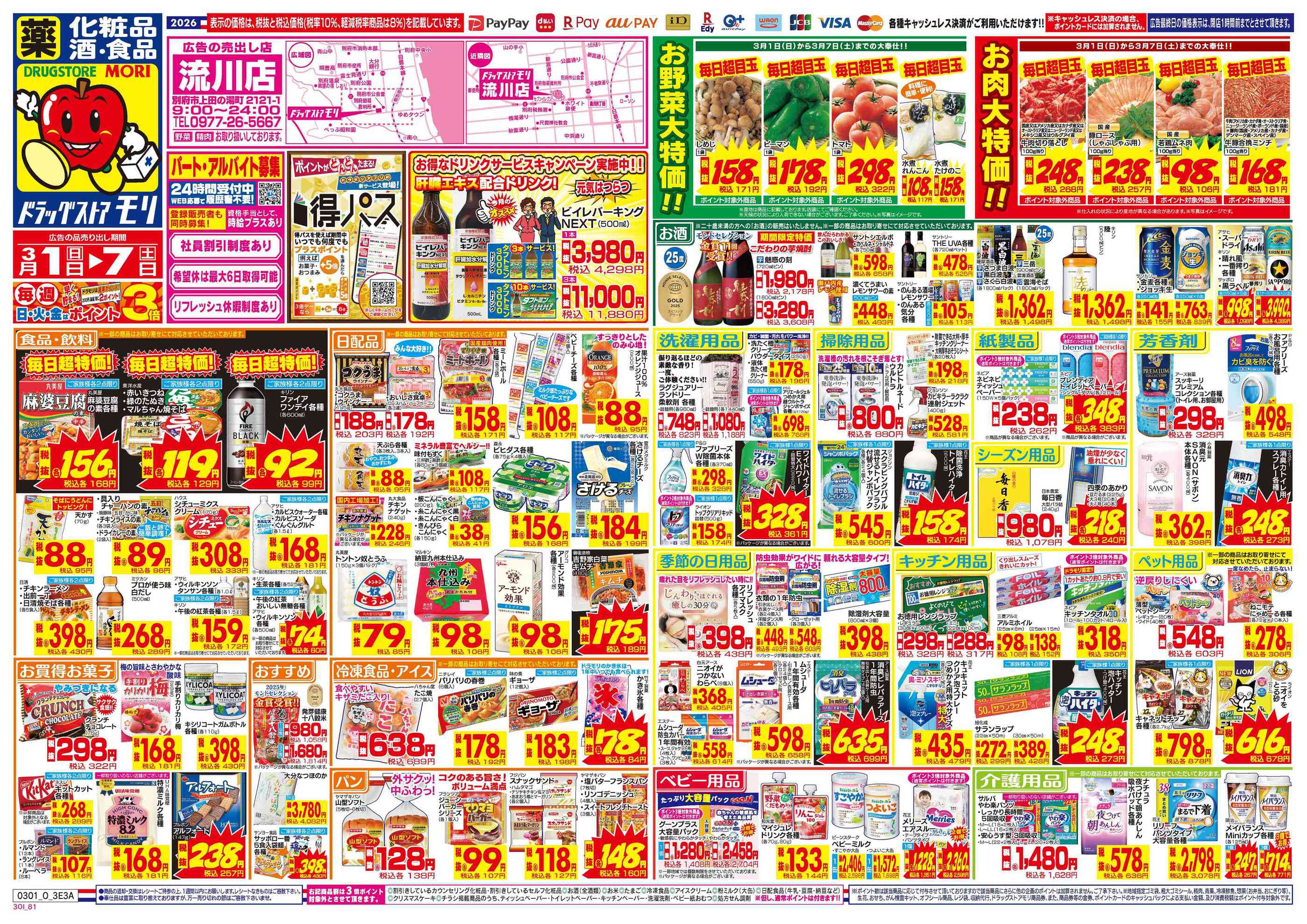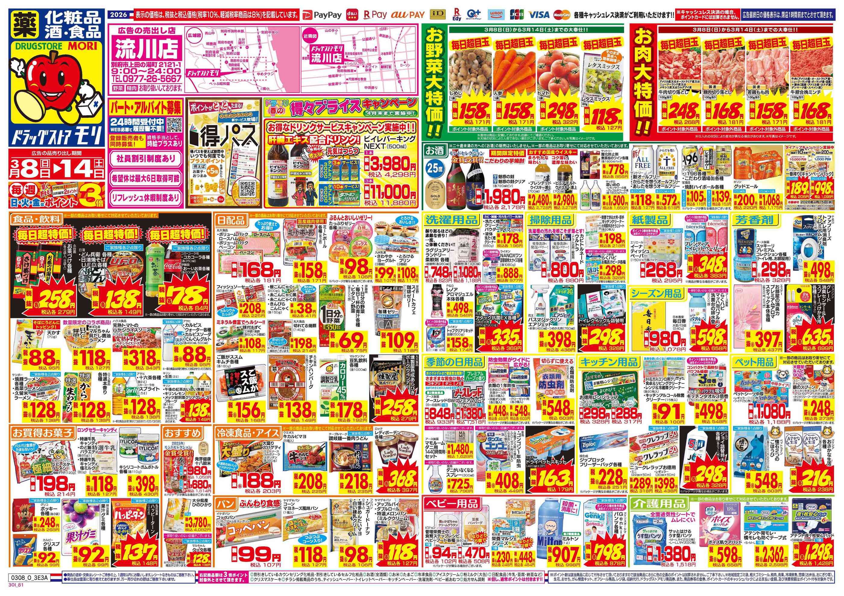 ドラッグストアモリ流川店今週のチラシ(2026年3月9日〜3月15日)