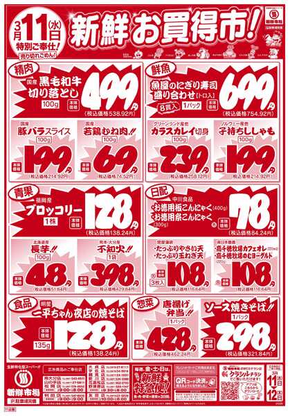 ※「店舗の掲載内容について」チラシガイドに掲載している情報は、独自に調査した内容及びユーザーから頂いた情報を掲載しています。お気づきの点がございましたら「お問い合わせ」よりご連絡ください。また店舗の営業状況、商品に関するお問い合わせは直接店舗事業者にご確認ください。