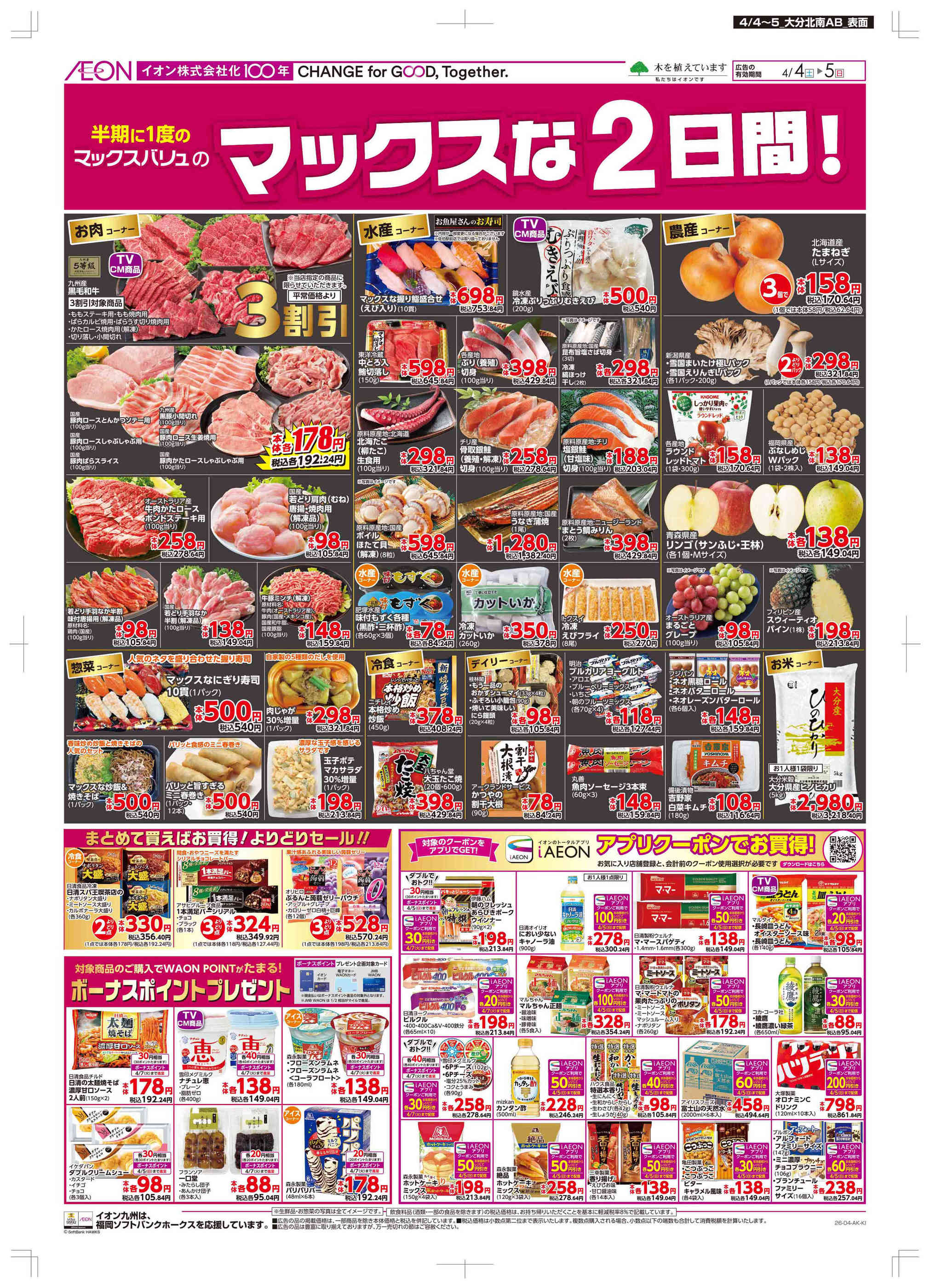 マックスバリュ別府上原店今週のチラシ(2026年3月30日〜4月5日)