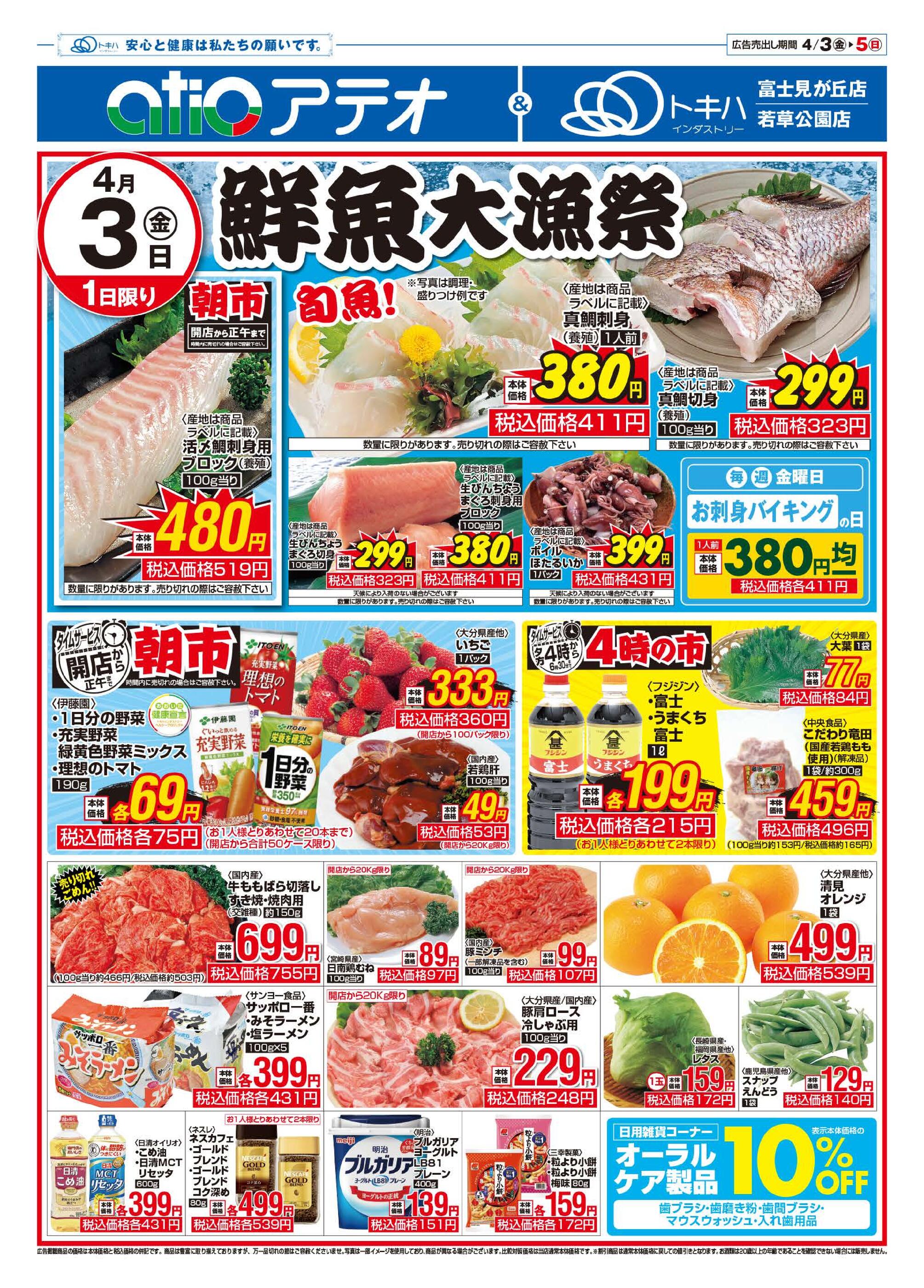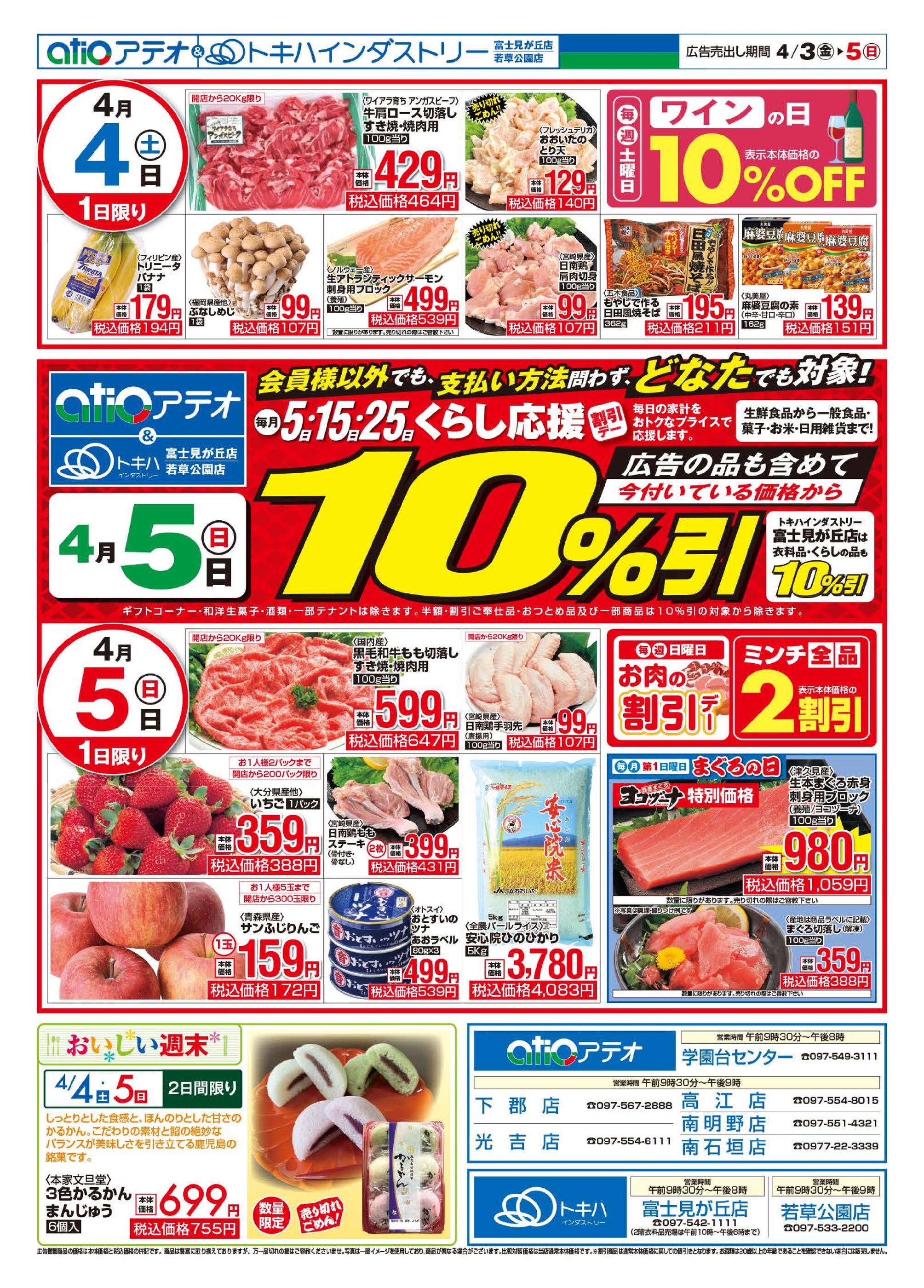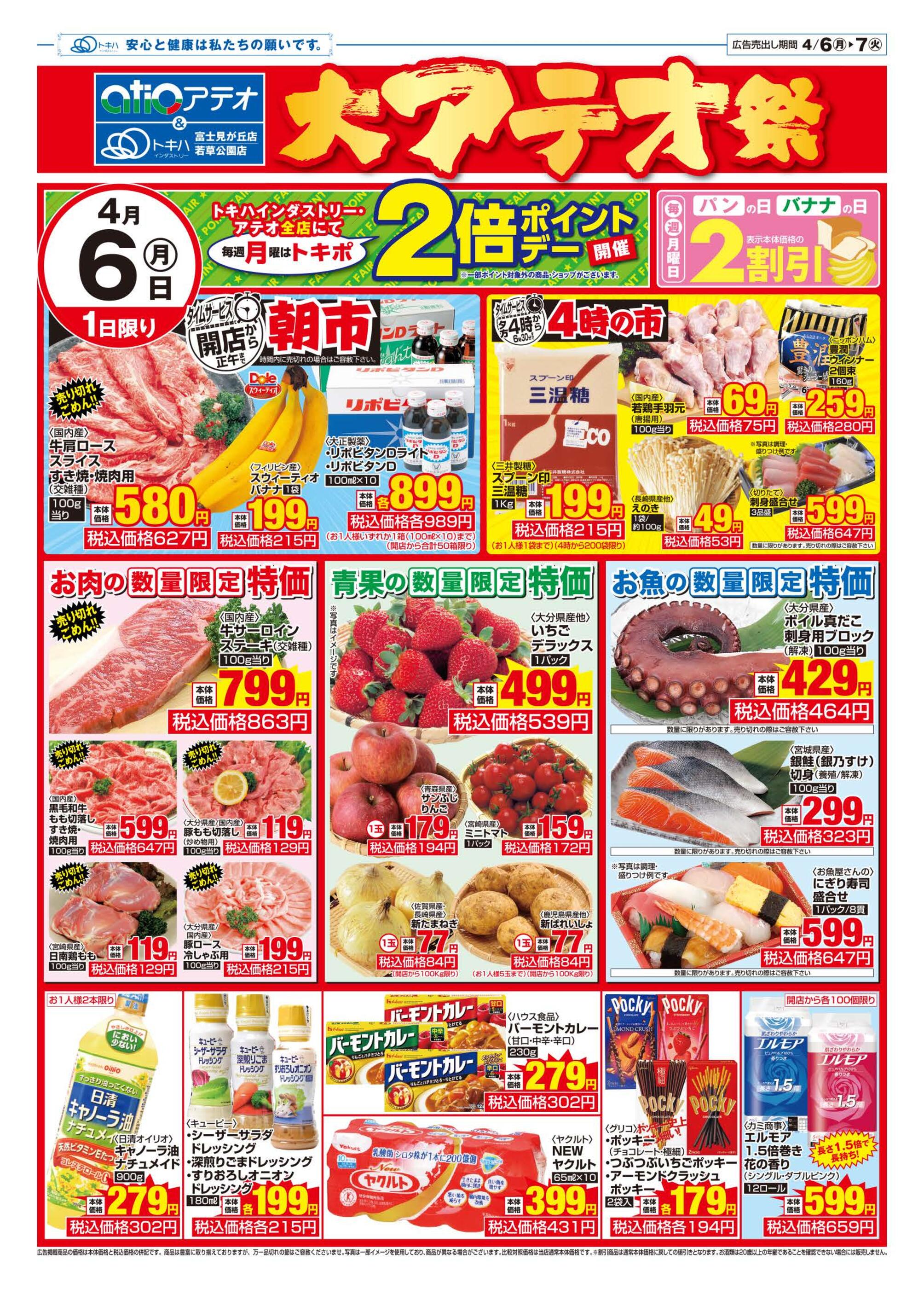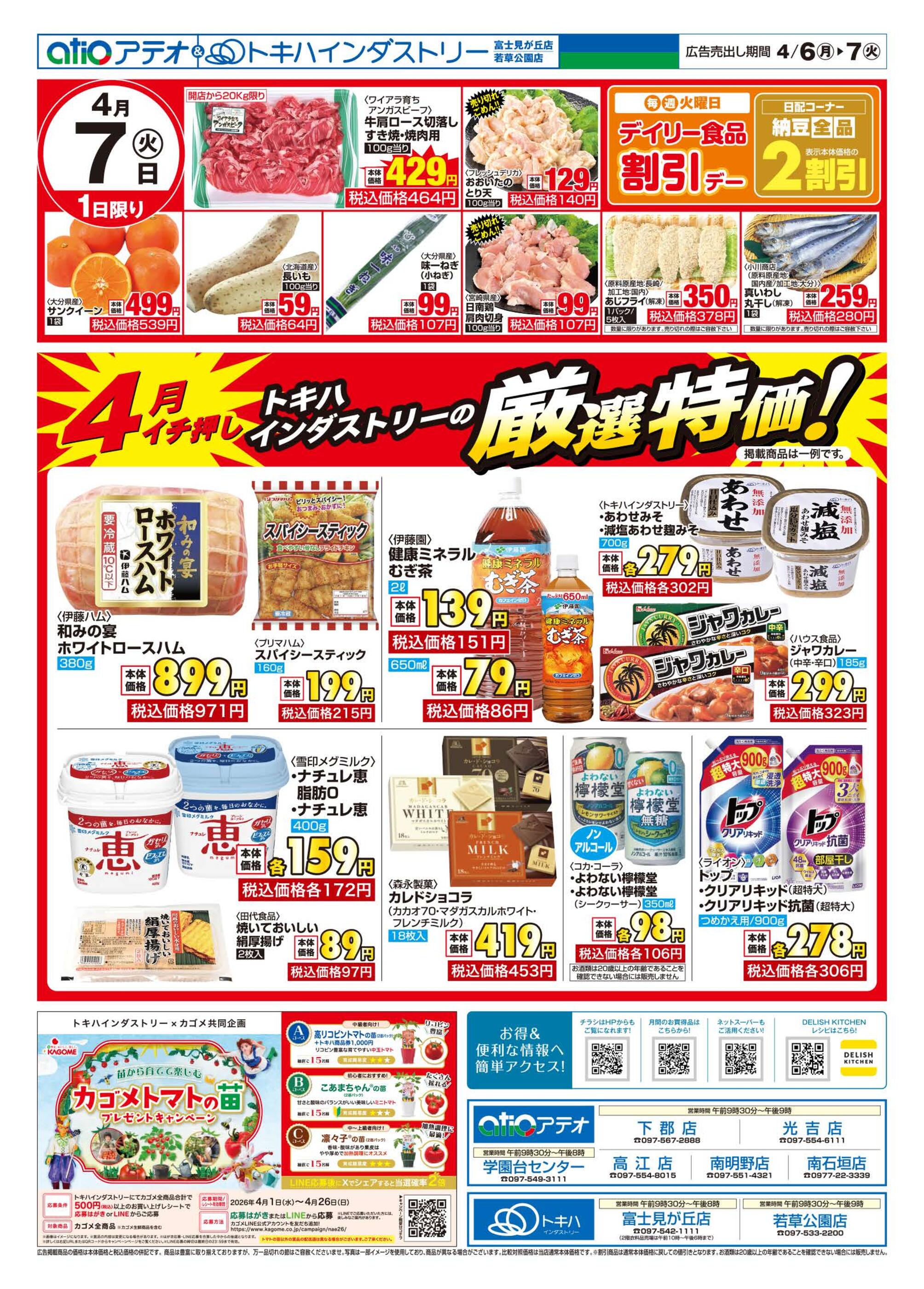 トキハインダストリーアテオ高江店今週のチラシ(2026年4月6日〜4月12日)