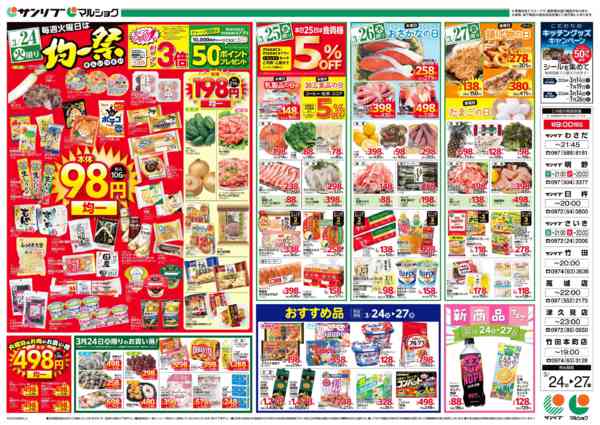 特売やセール情報など最新のチラシを掲載中。(3種類、6枚のチラシを掲載しています)